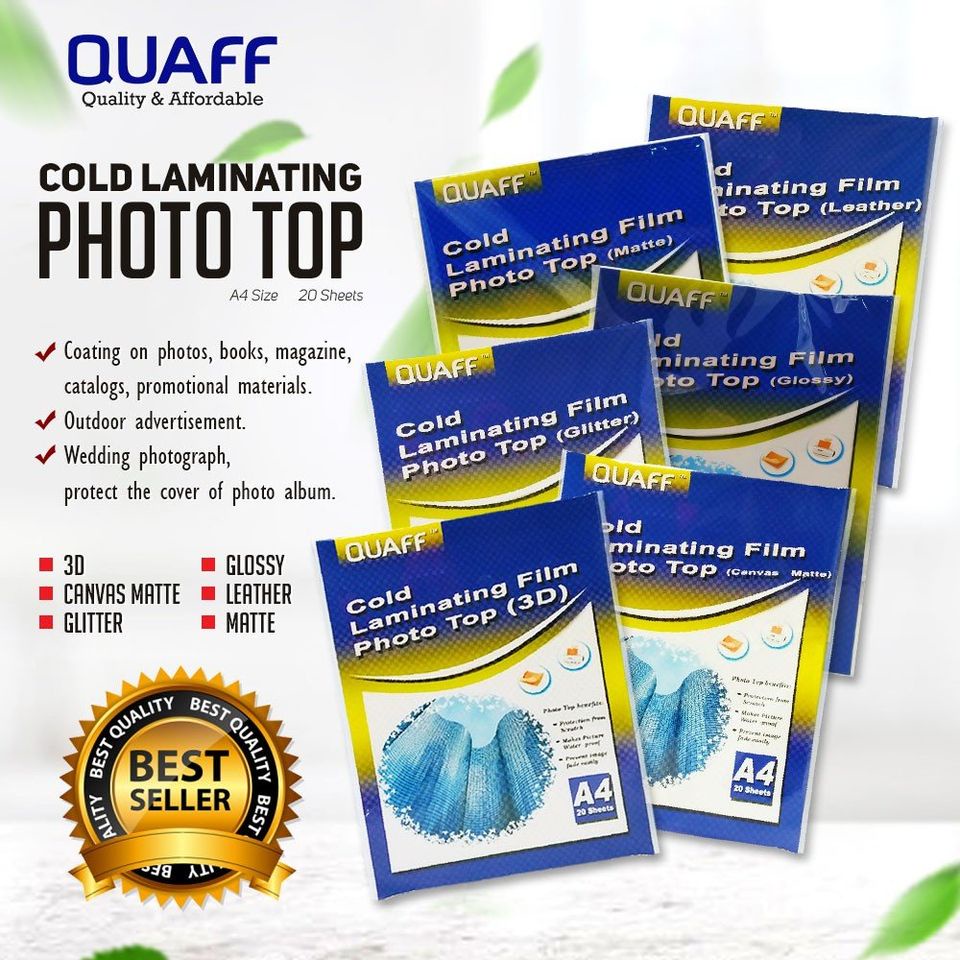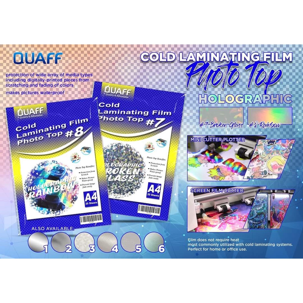 Quaff Cold Laminating Film Photo Top A4 Size 80 Microns (Glitter/Leather/3D/Canvas/Broken/Rainbow)