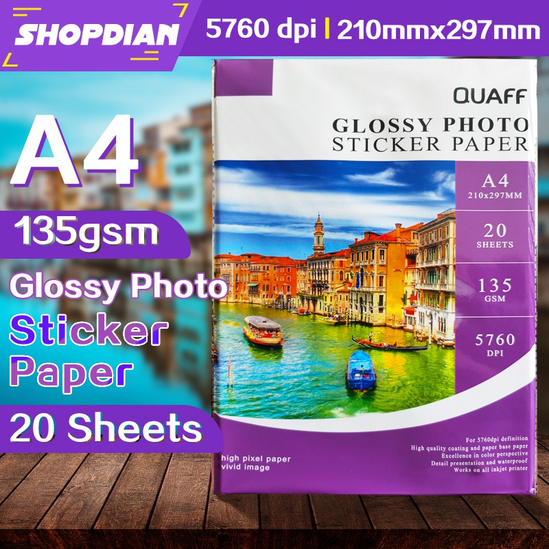 Quaff Glossy Photo Sticker 90gsm & 135gsm A4 Sticker Paper Label