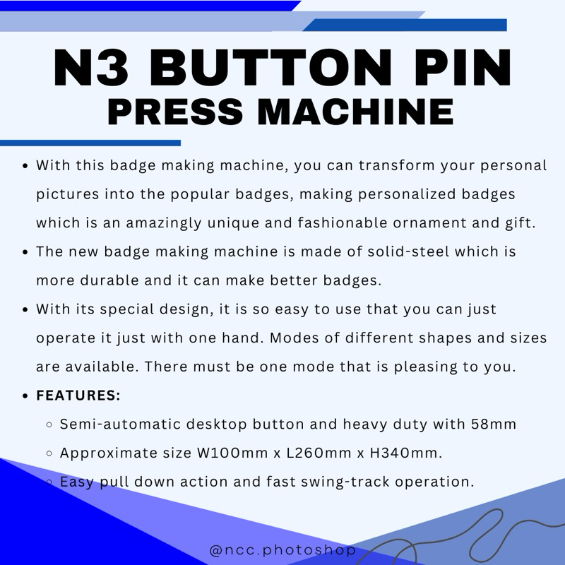 Quaff N3 Button Pin Press Machine with Mold