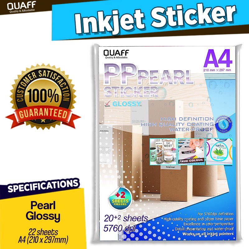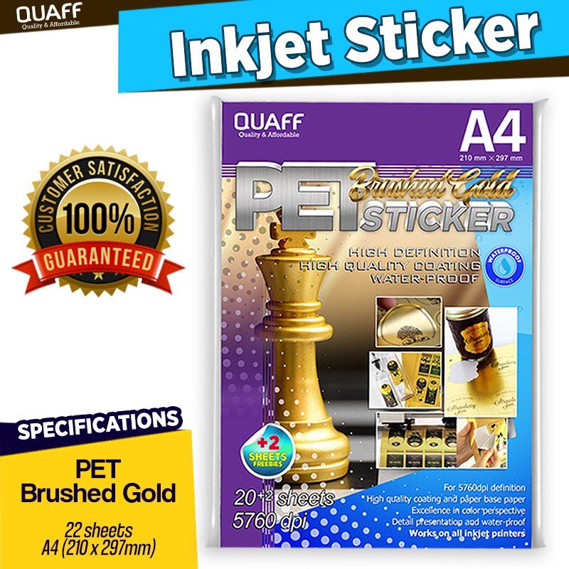 Quaff Pet Printable Label Sticker Waterproof A4 Size Pp Pearl GLOSSY/PET HOLOGRAPIC/BRUSH GOLD