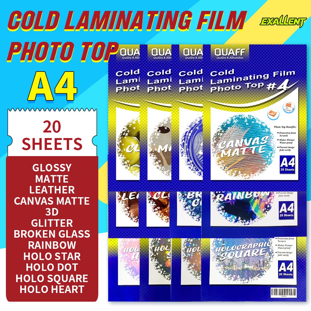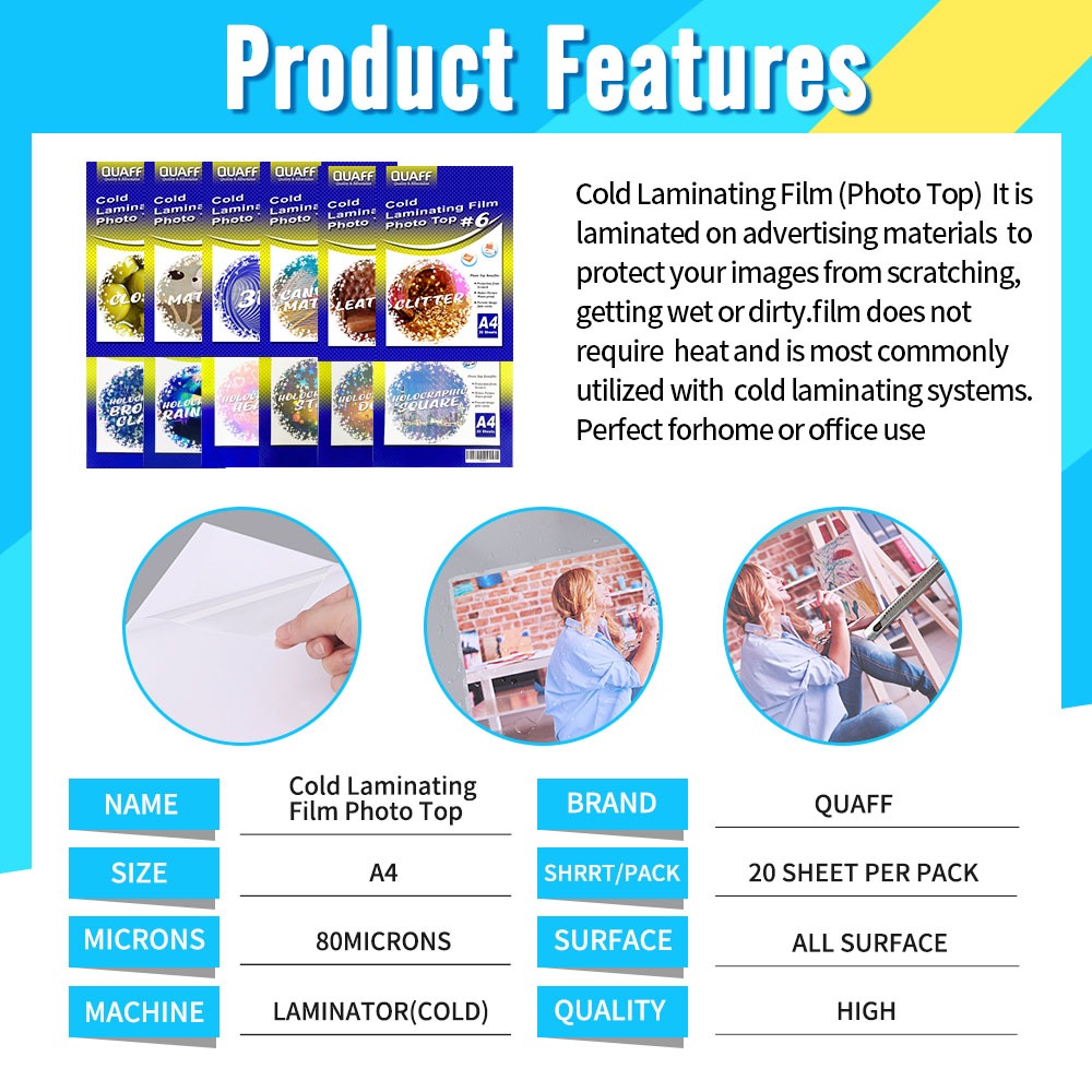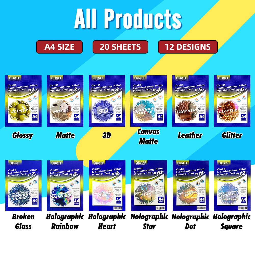 Quaff Photo Top Cold Laminating Film Photo Top A4 ( Glossy / Glitter / Canvas Matte / 3D / Rainbow )