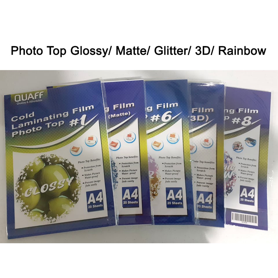 Quaff Photo top A4 Glossy/ Matte/ Glitter/ 3D/ Rainbow(Cold Laminating Film)