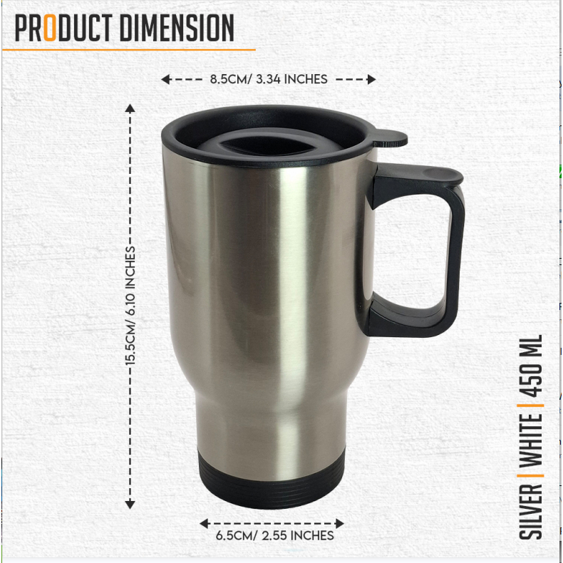 Quaff Sublimation Coated Cars Mug White/Silver Travel Mug 450ml Mug with Cover