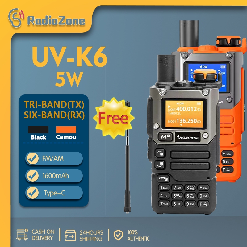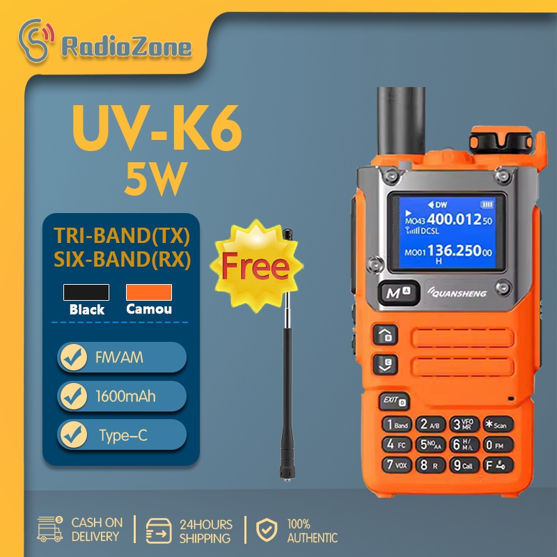 Quansheng UV-K6 5W Two Way Radio Long Range Portable TypeC Charge Walkie Talkie Telescopic Antenna