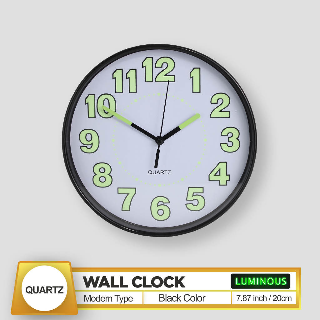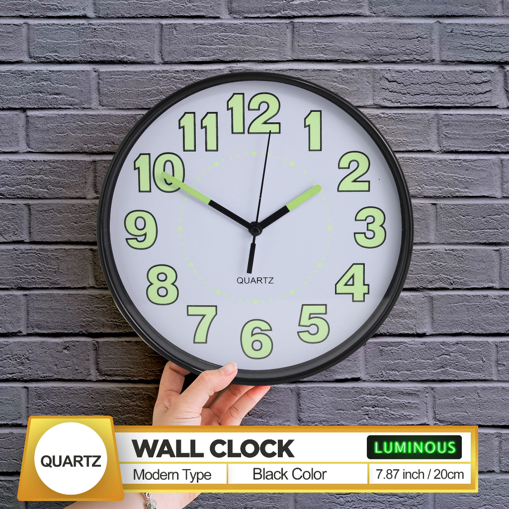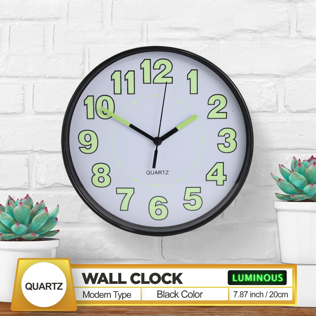 Quartz Luminous / Glow In The Dark Wall Clock 20Cm 8 Inches