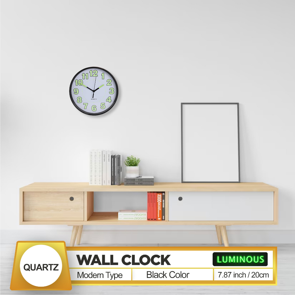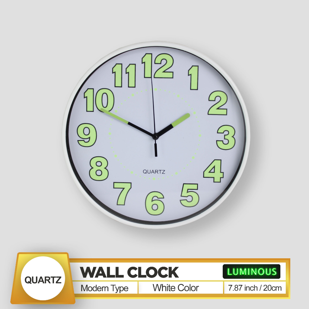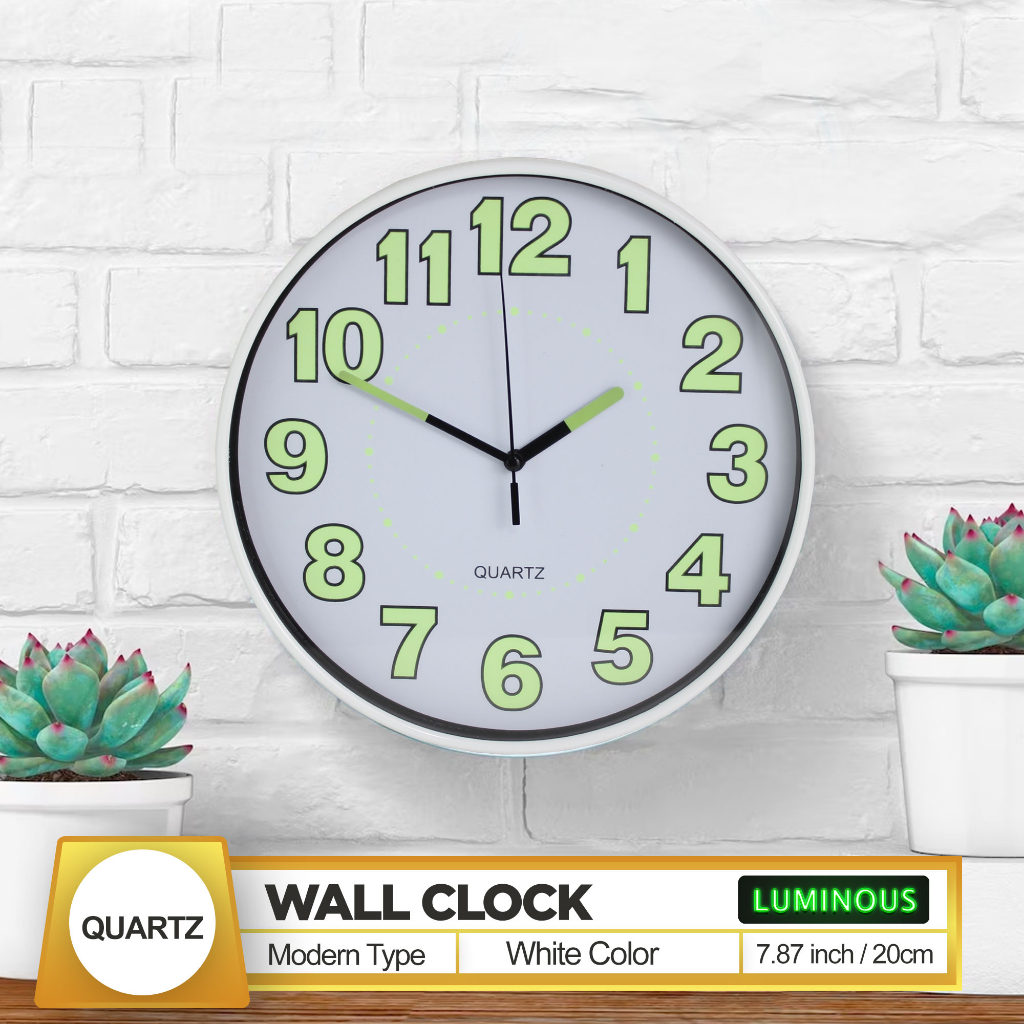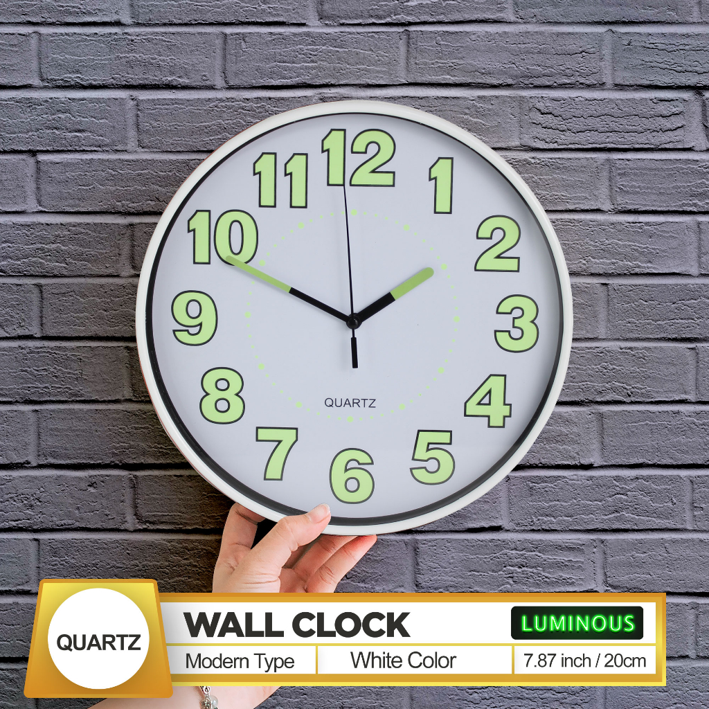 Quartz Luminous / Glow In The Dark Wall Clock 20Cm 8 Inches