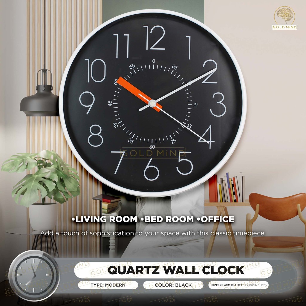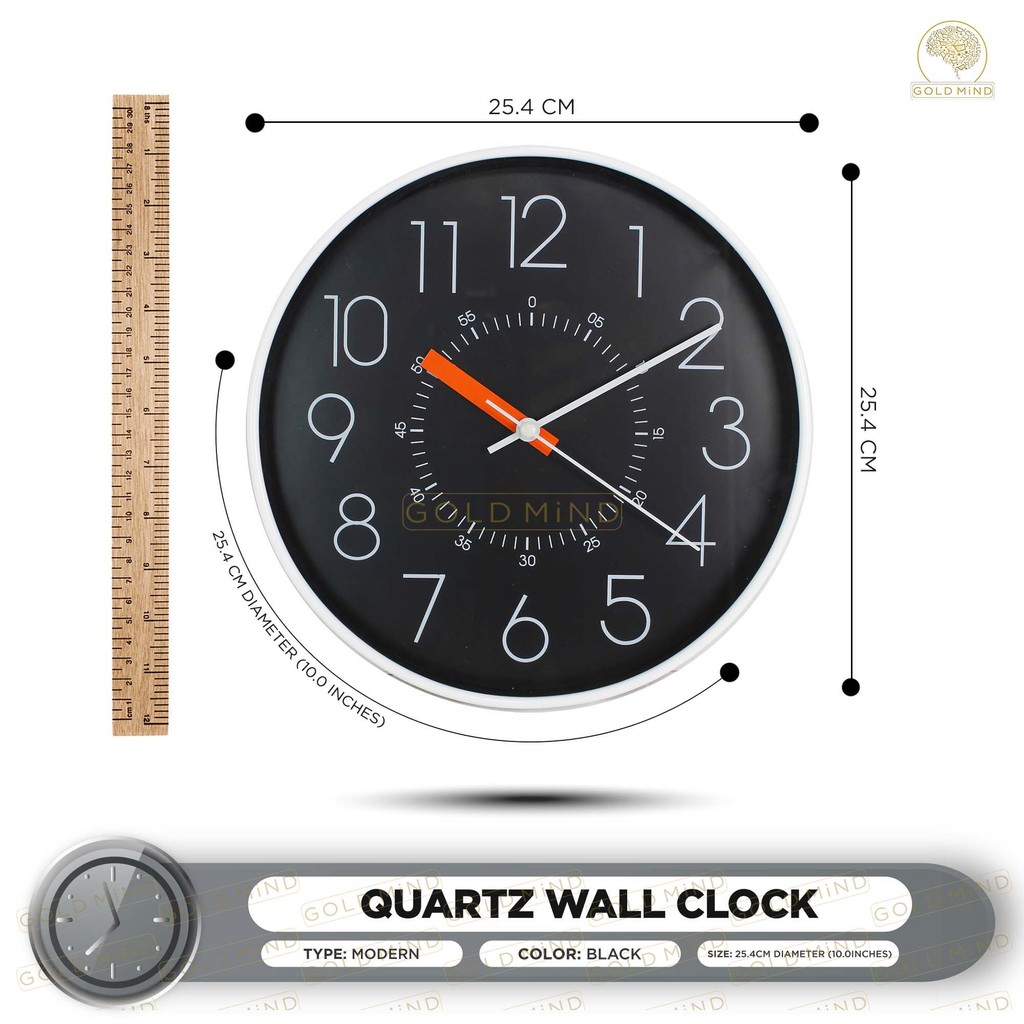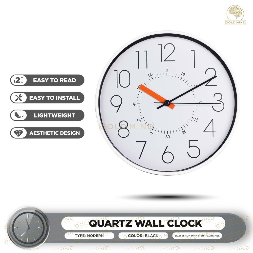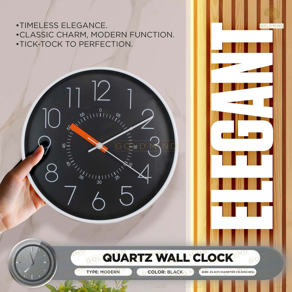 Quartz Wall Clock Orange Hour Hand 25.4cm Or 10" White Background/White Frame