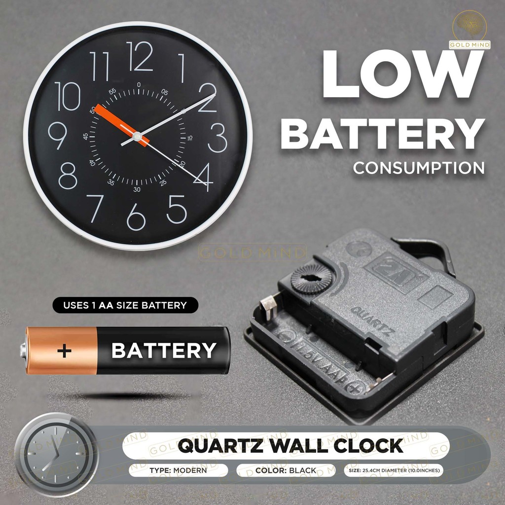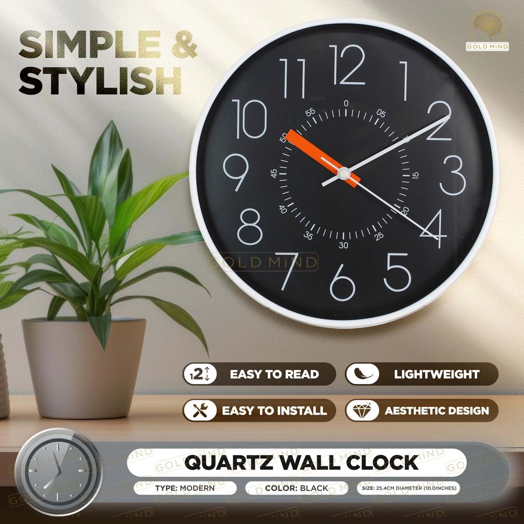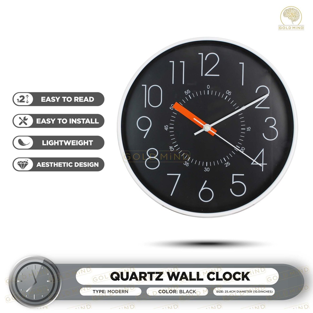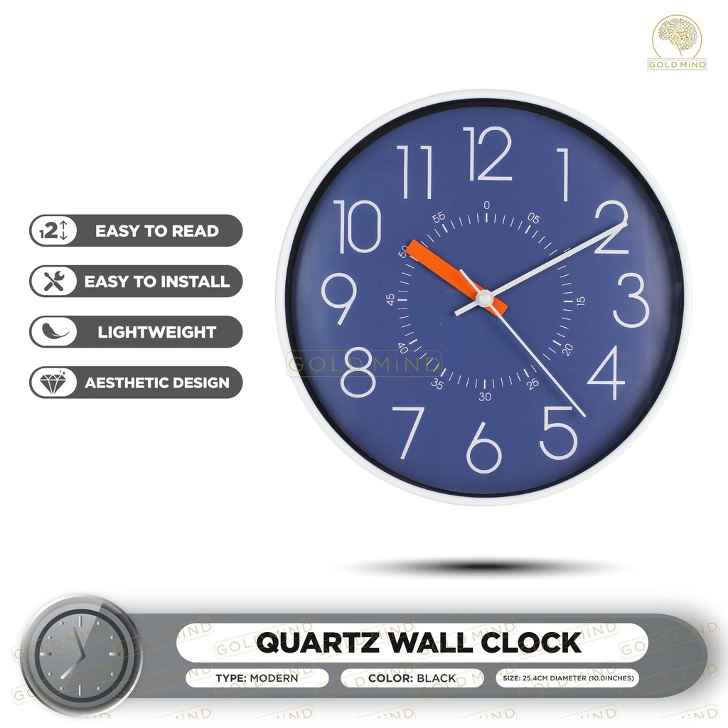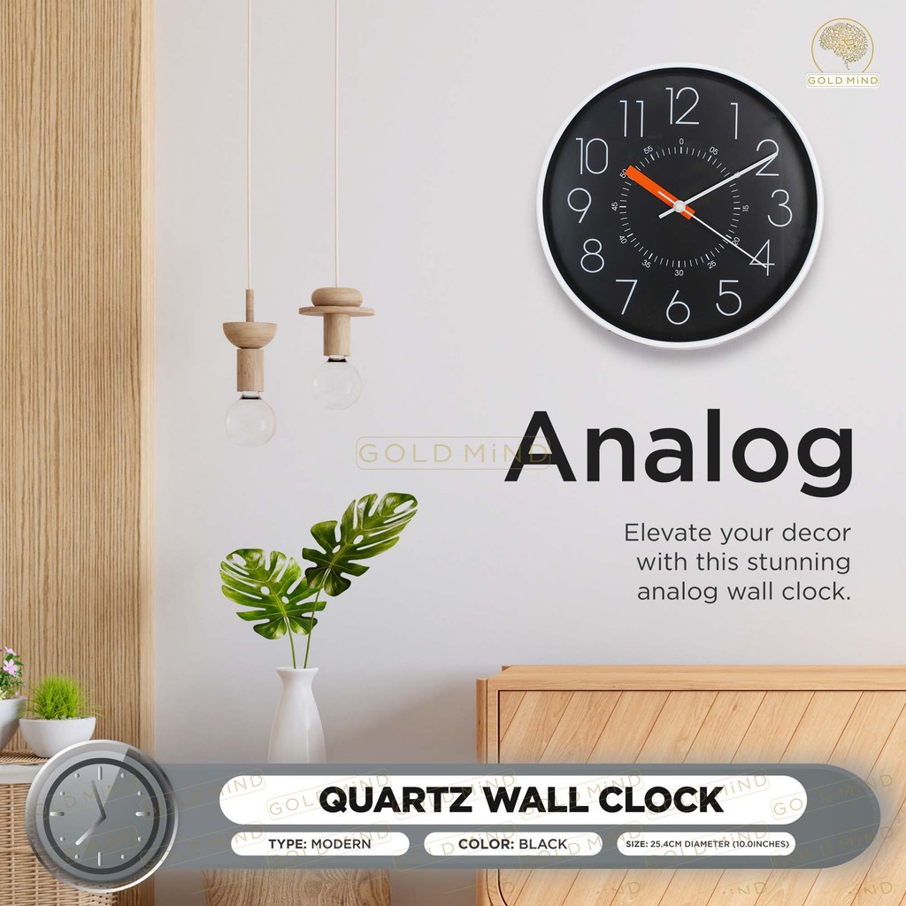 Quartz Wall Clock Orange Hour Hand 25.4cm Or 10" White Background/White Frame