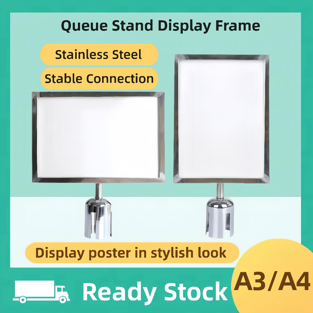 Queue Stand Signboard Display Frame A4 A3 Queue Up Pole Poster Display Board Stanchion Top Sign Frame Crowd Control