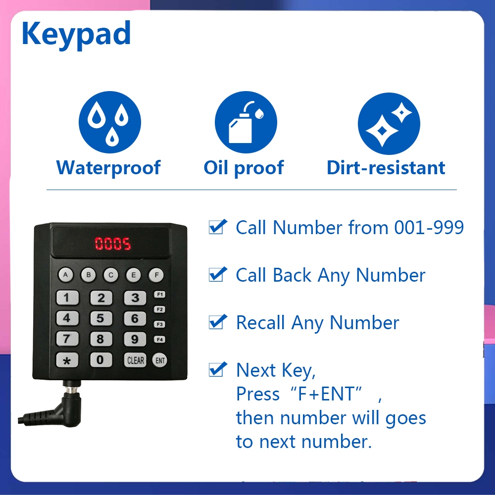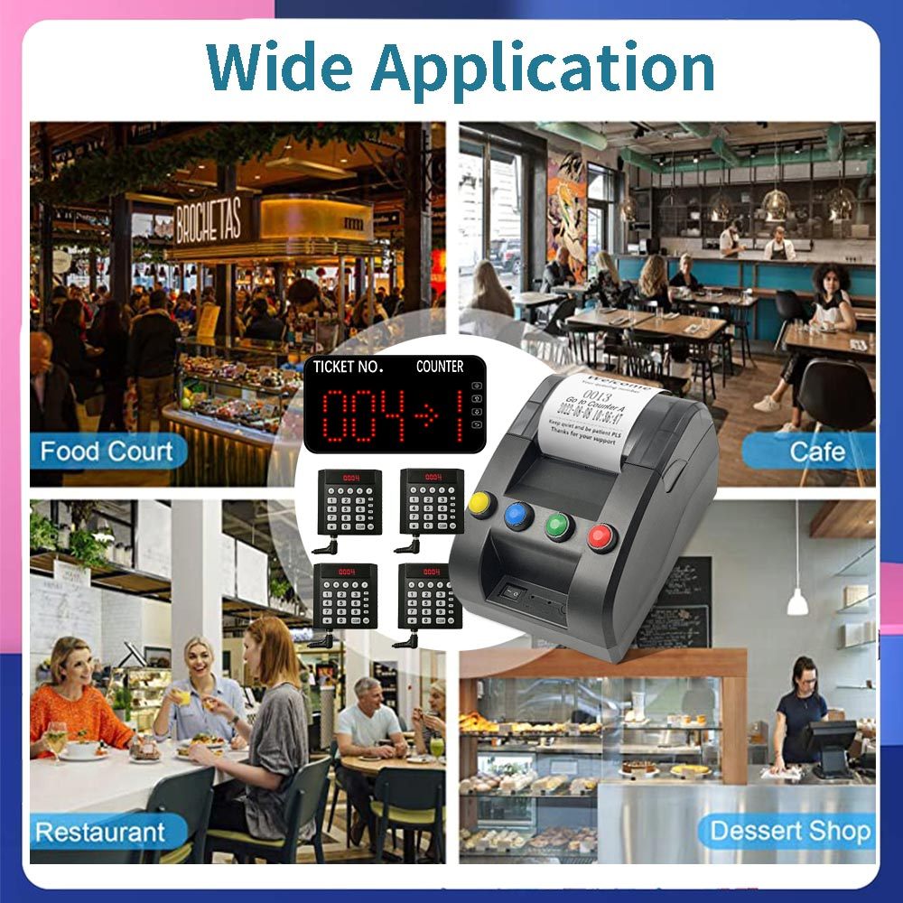 Queue Wireless Calling System for Restaurant Hospital Kitchen Call Pager Long range waiting number for multiple counters Printer for Ticket Prints 4 Department Counter Numbers