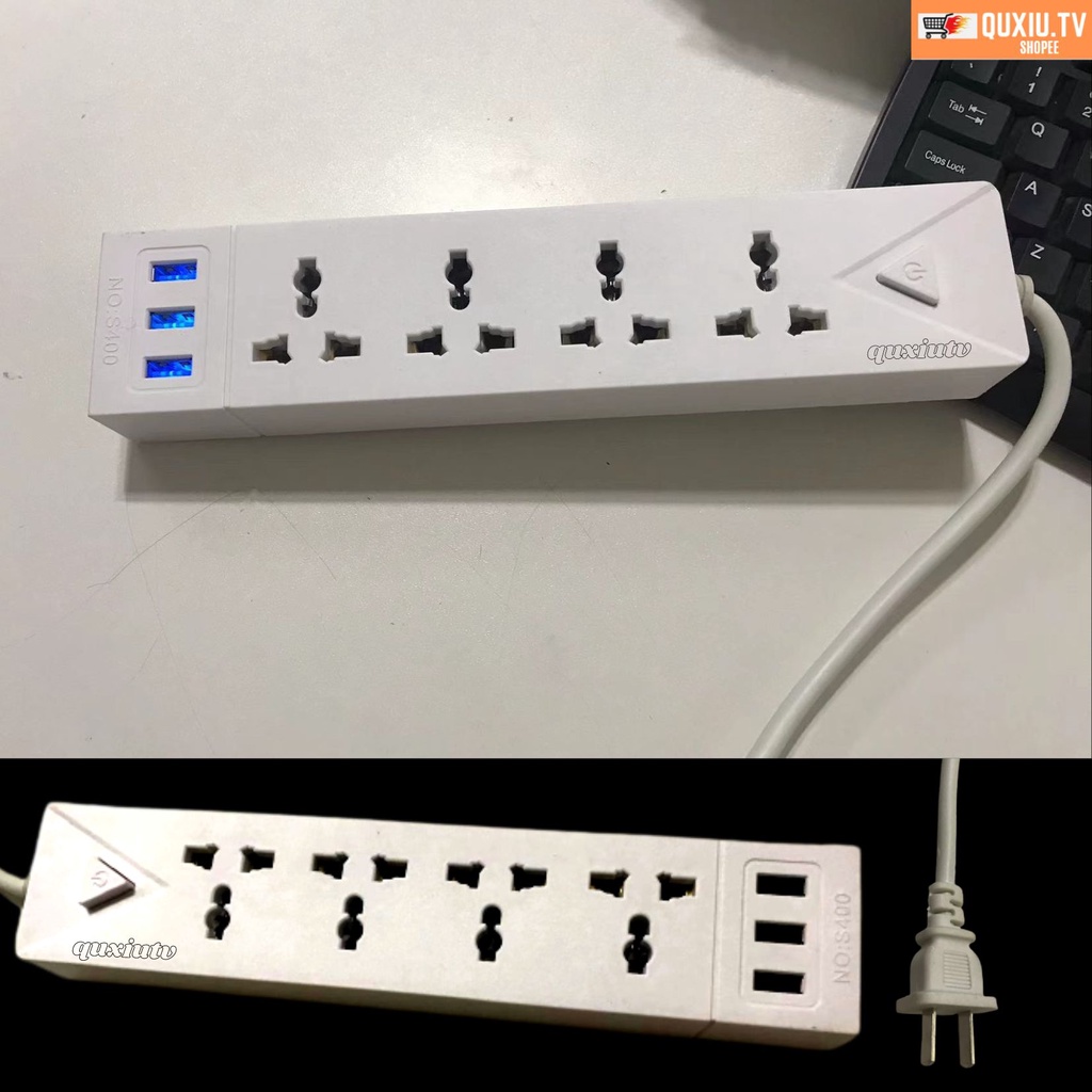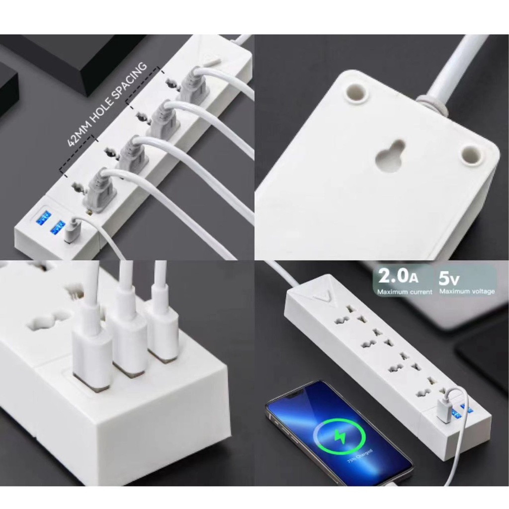 Quick Charge Power Strip with 3 USB & 4 Power Extension Sockets 10A 220V Standard Power Strip