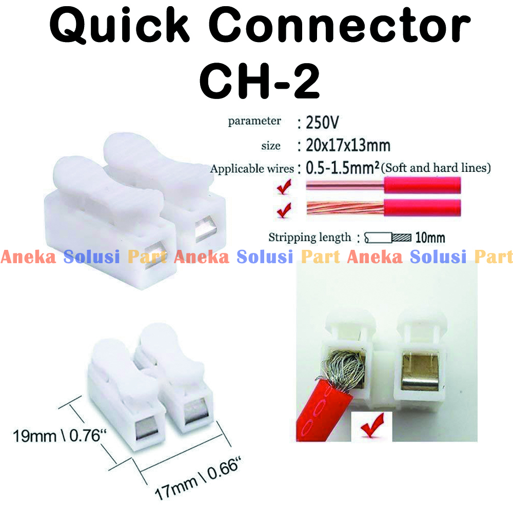 Quick Connect 2 Wire Connector Electrical Cable Connection Terminal CH-2