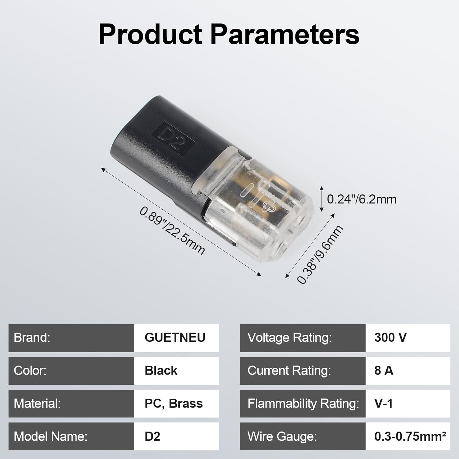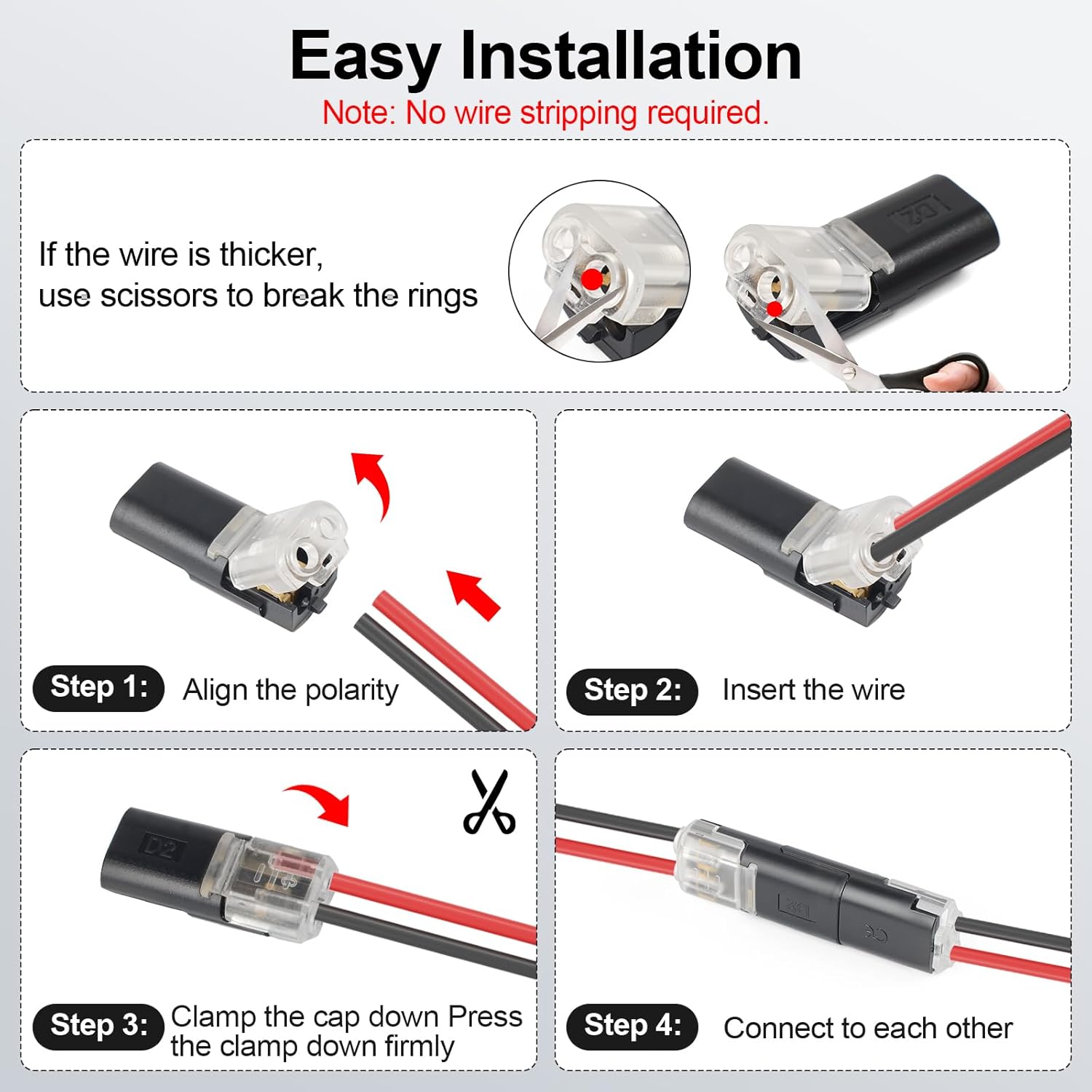 Quick Splice Wire Connectors, 2-Pin 2-Way Dual-Wire Plug-in Terminals, Copper Contact, No Stripping Required, for AWG 18-22,, For Christmas Gift