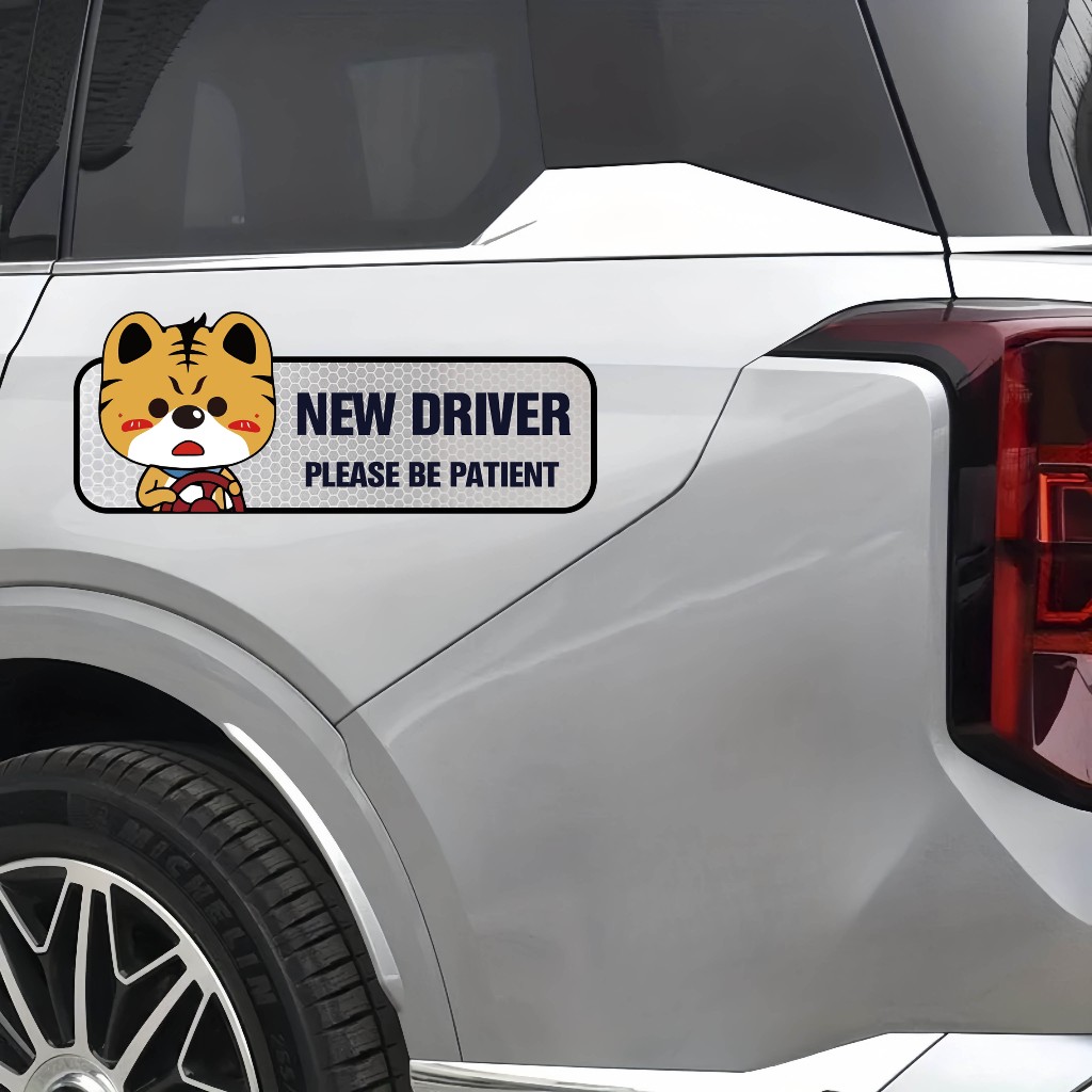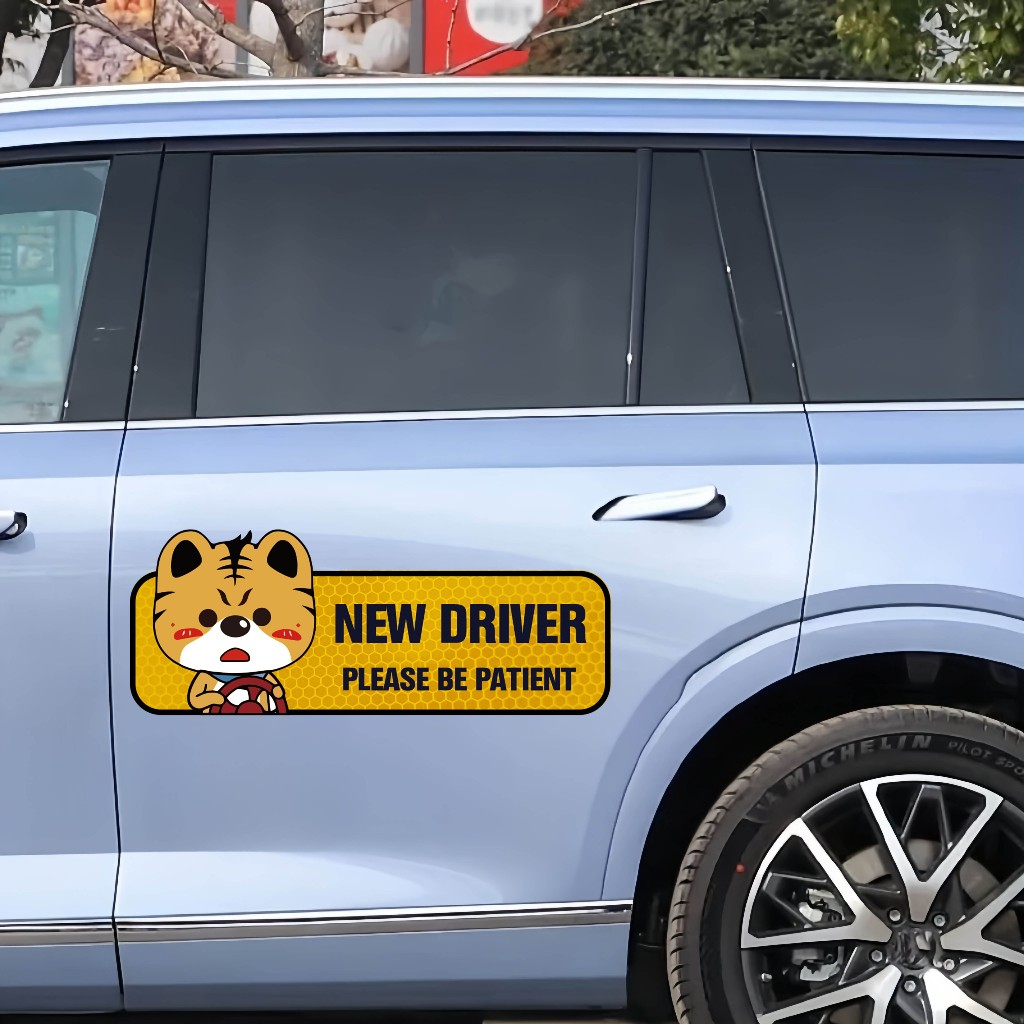 Quirky Tiger Reflective Car Sticker For Student Drivers, Car Warning Sticker For Novice Drivers, Personalised Magnetic And Vinyl Adhesive Car Decal