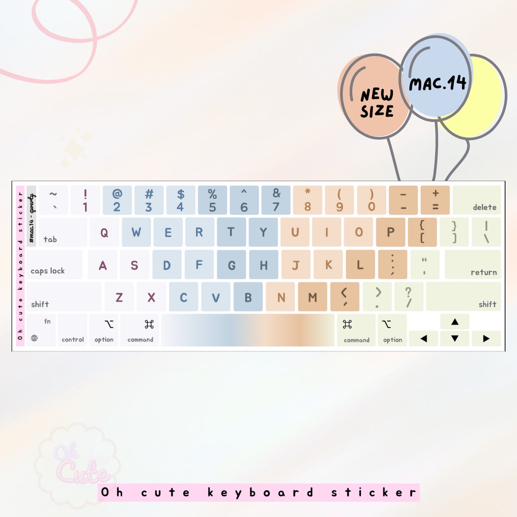 Qwerty Keyboard Sticker for Macbook Aesthetic Palette Color Vinyl Laminated - Oh Cute Sticker