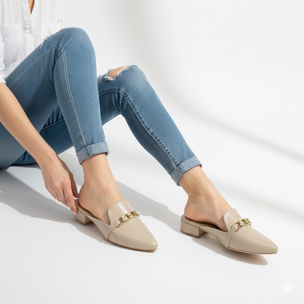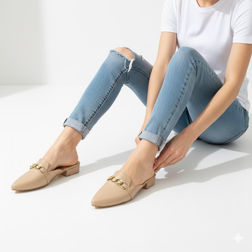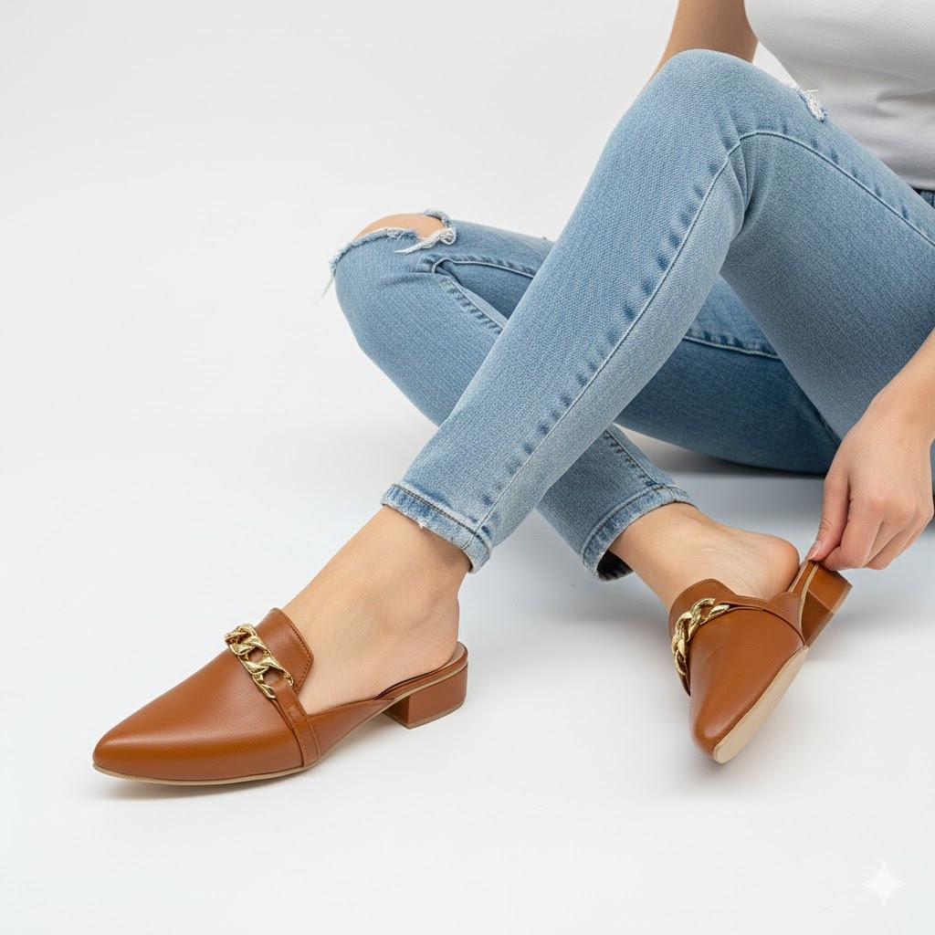 R&A870 1-Inch Pointed Toe with Gold Chain Embellishment at Vamp Closed Toe Heels (Narrow Fit)