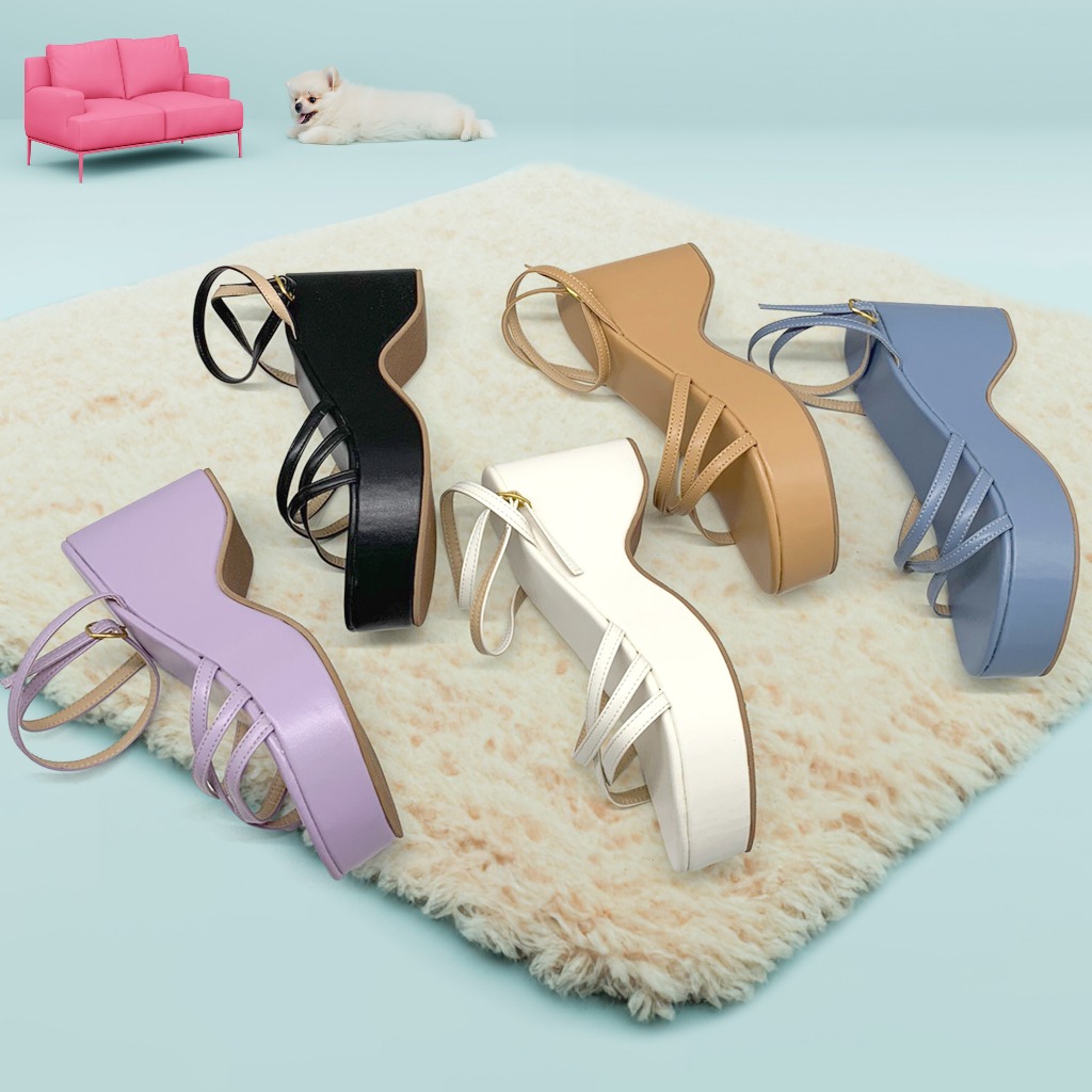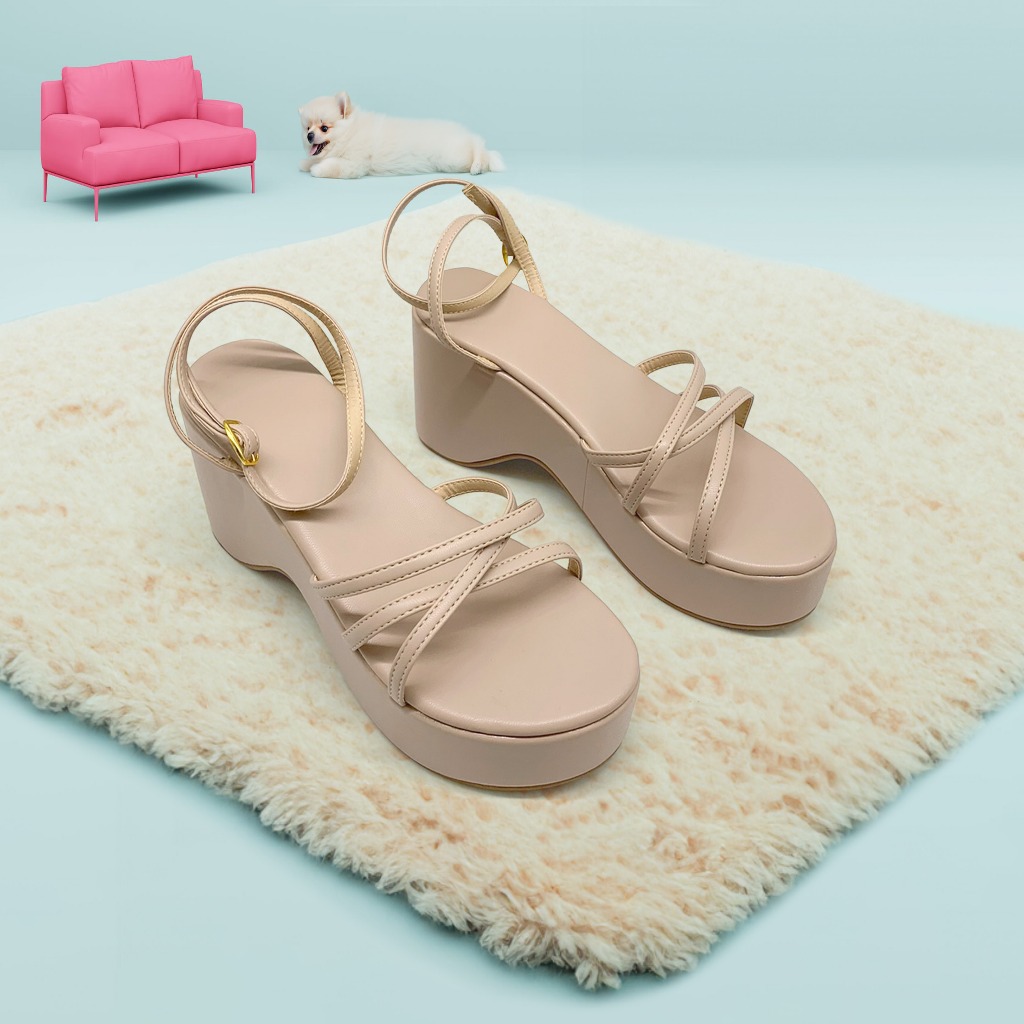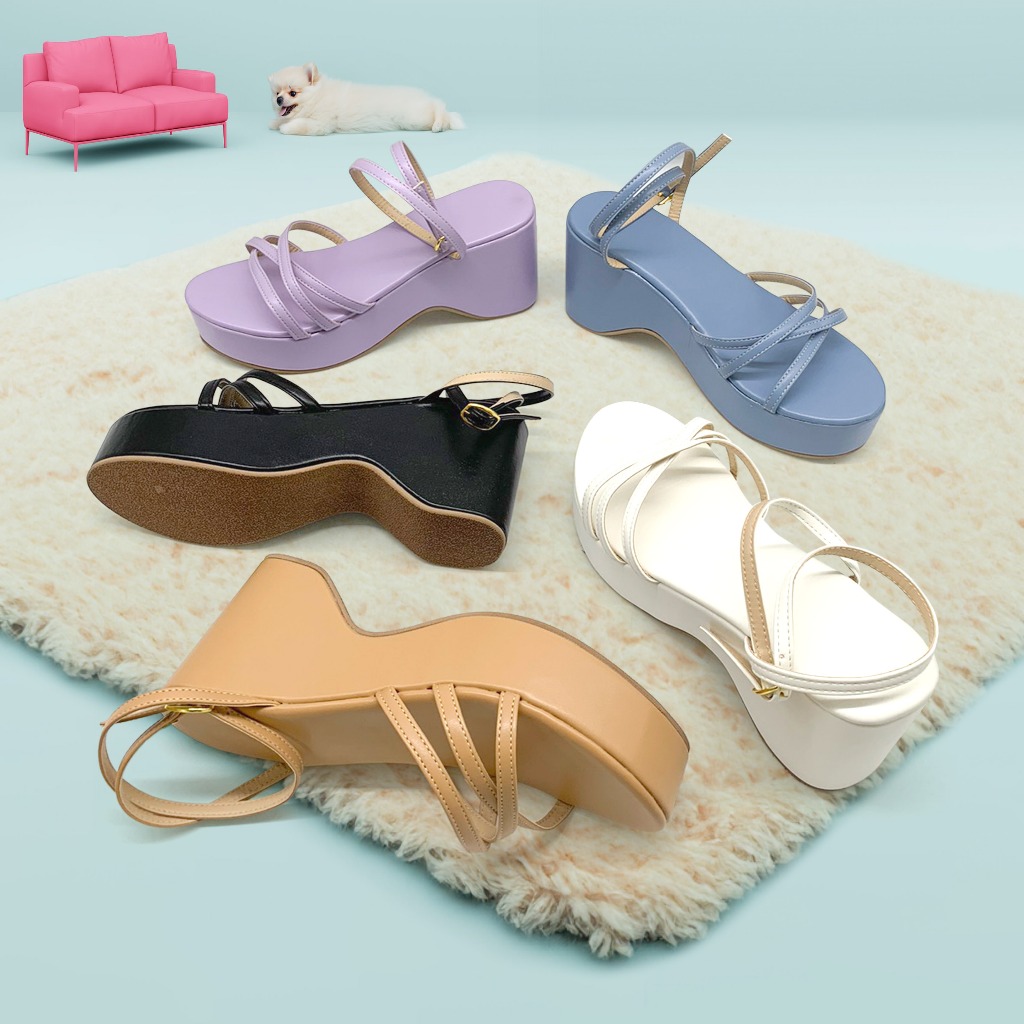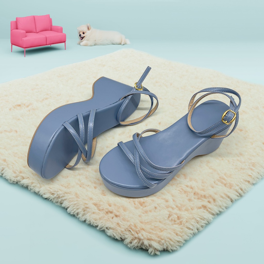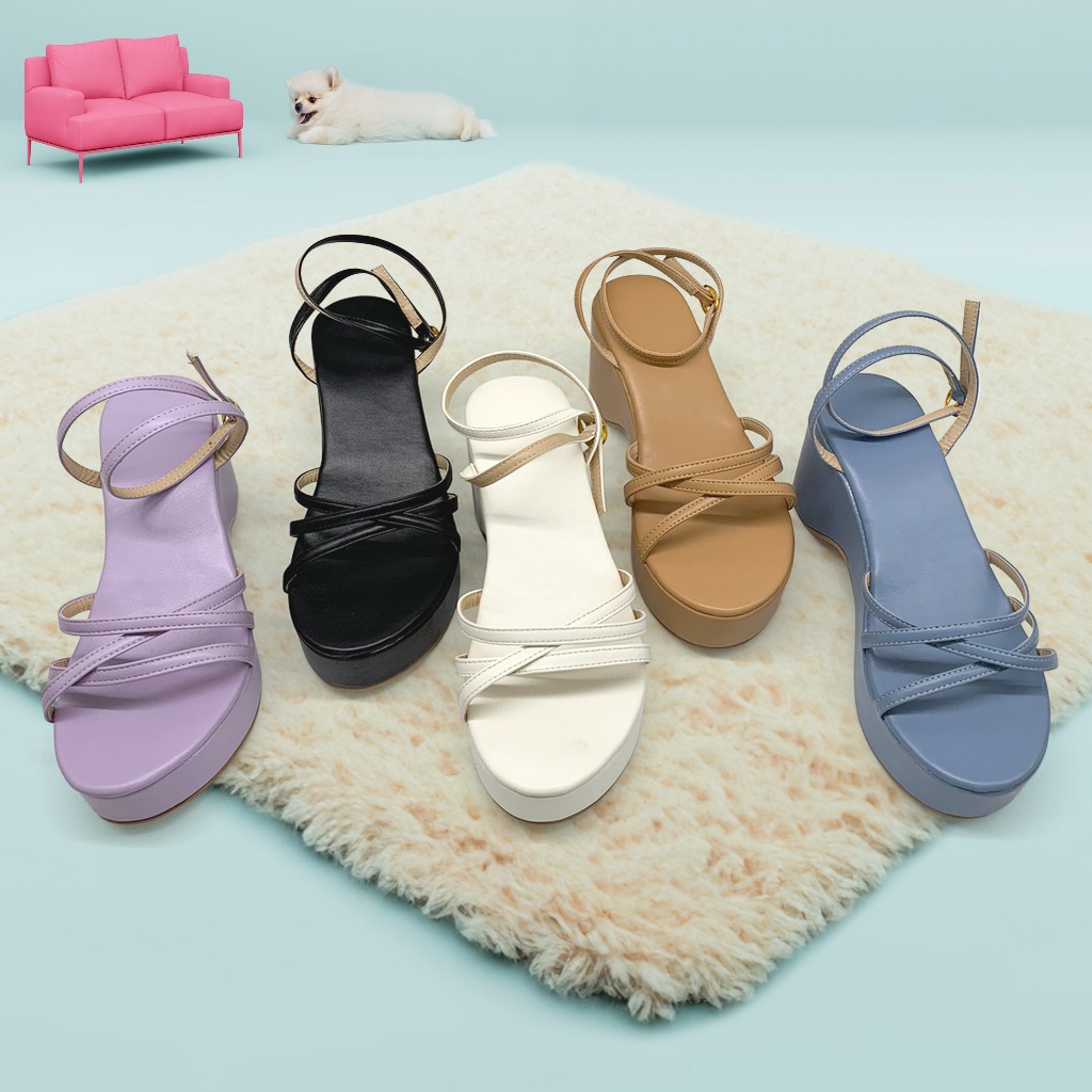 R&A921 3-Inch Round Toe w/ Triple Cross Toe Straps with Ankle Straps in Wedge Design (Standard Fit)