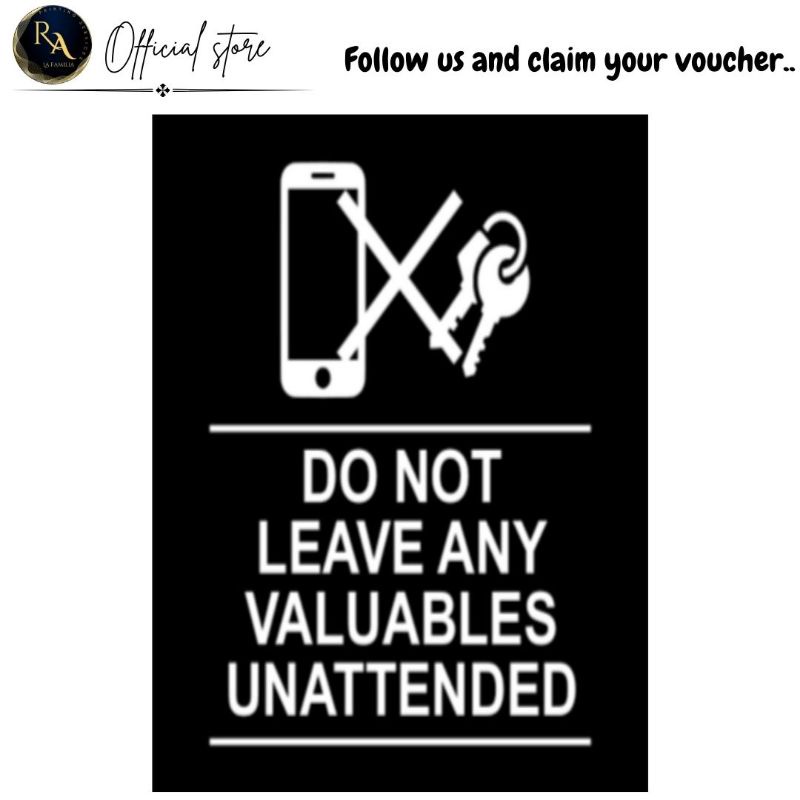 R.A DO NOT LEAVE ANY VALUABLES UNATTENDED PVC SIGNAGE. HIGH QUALITY PRINT