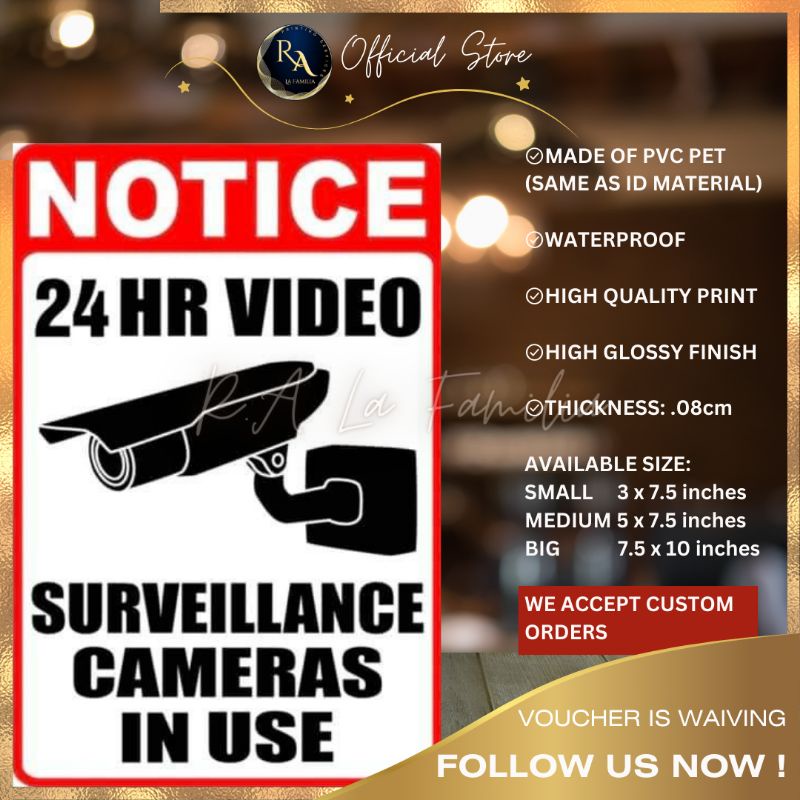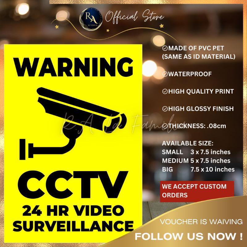 R.A PVC WARNING CCTV SURVEILLANCE SIGNAGE. WATERPROOF/ HIGH GLOSSY