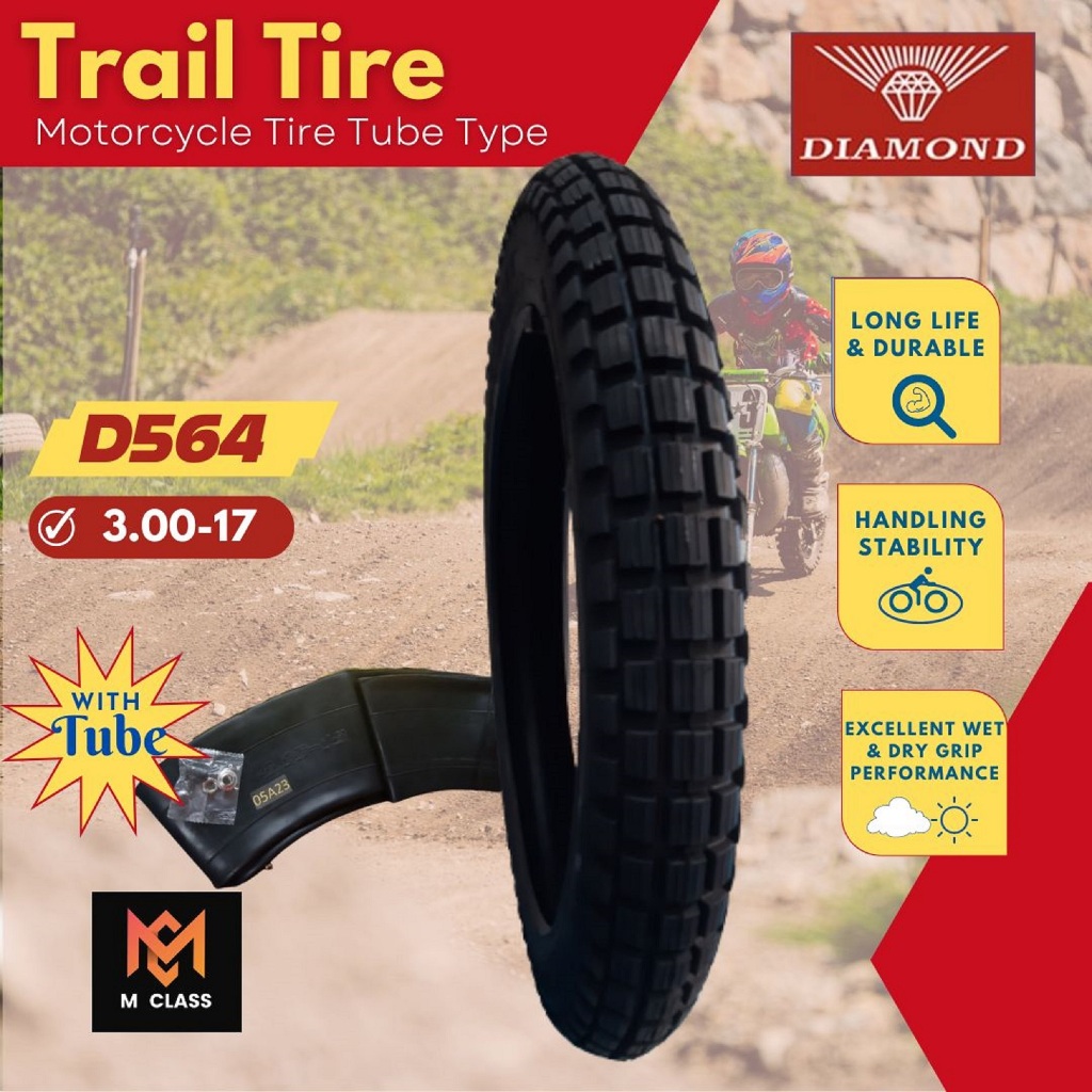 R17 D564 TRAIL TIRE TUBE TYPE FOR XRM, WAVE, SMASH115, RAIDER150, ROUSER135 - 2.75-17; 3.00-17