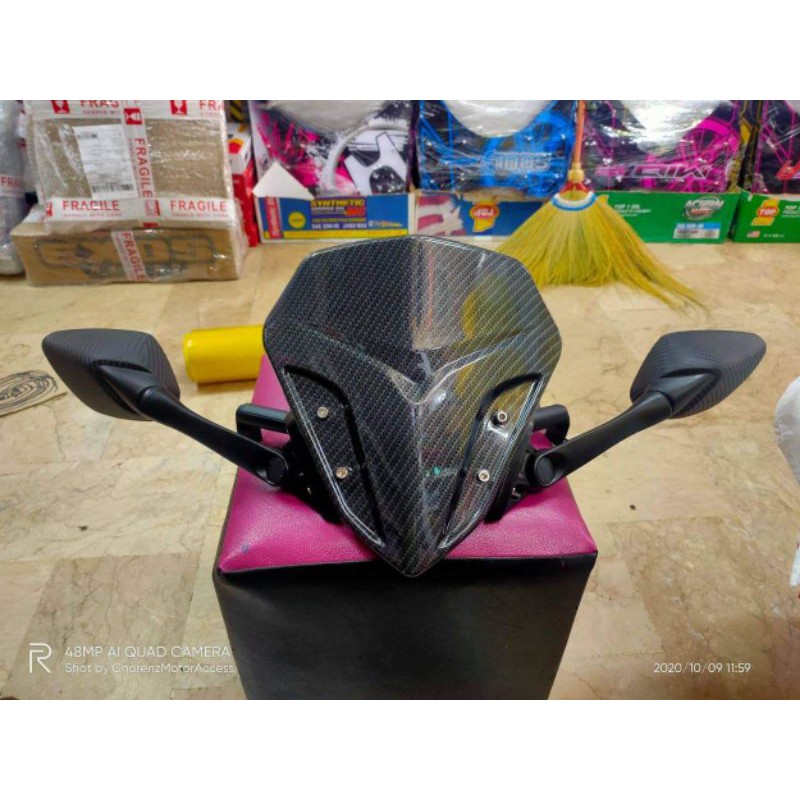 R25 WINDSHIELD BRACKET WITH SIDE MIRROR AND VISOR FOR HONDA CLICK V2&V3