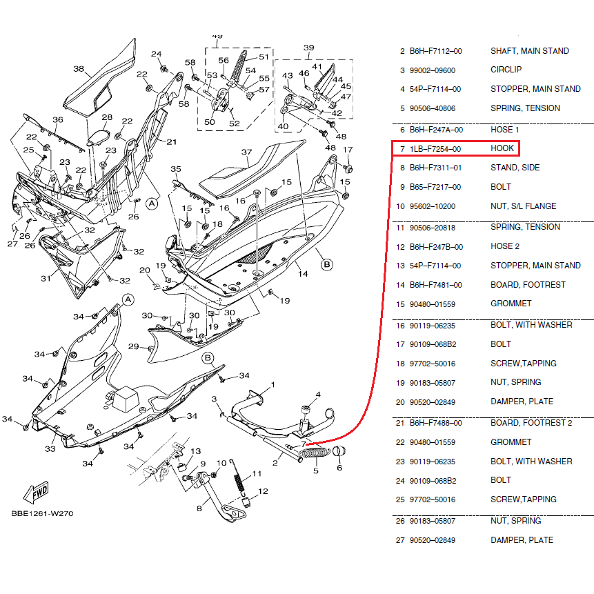 R9 B23 1LB-F7254-00 center stand spring HOOK FOR NMAX V2 100% ORIGINAL