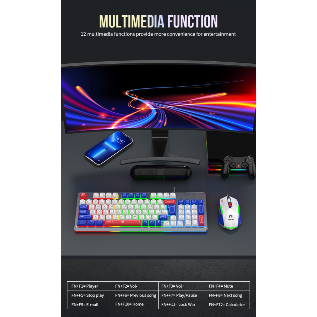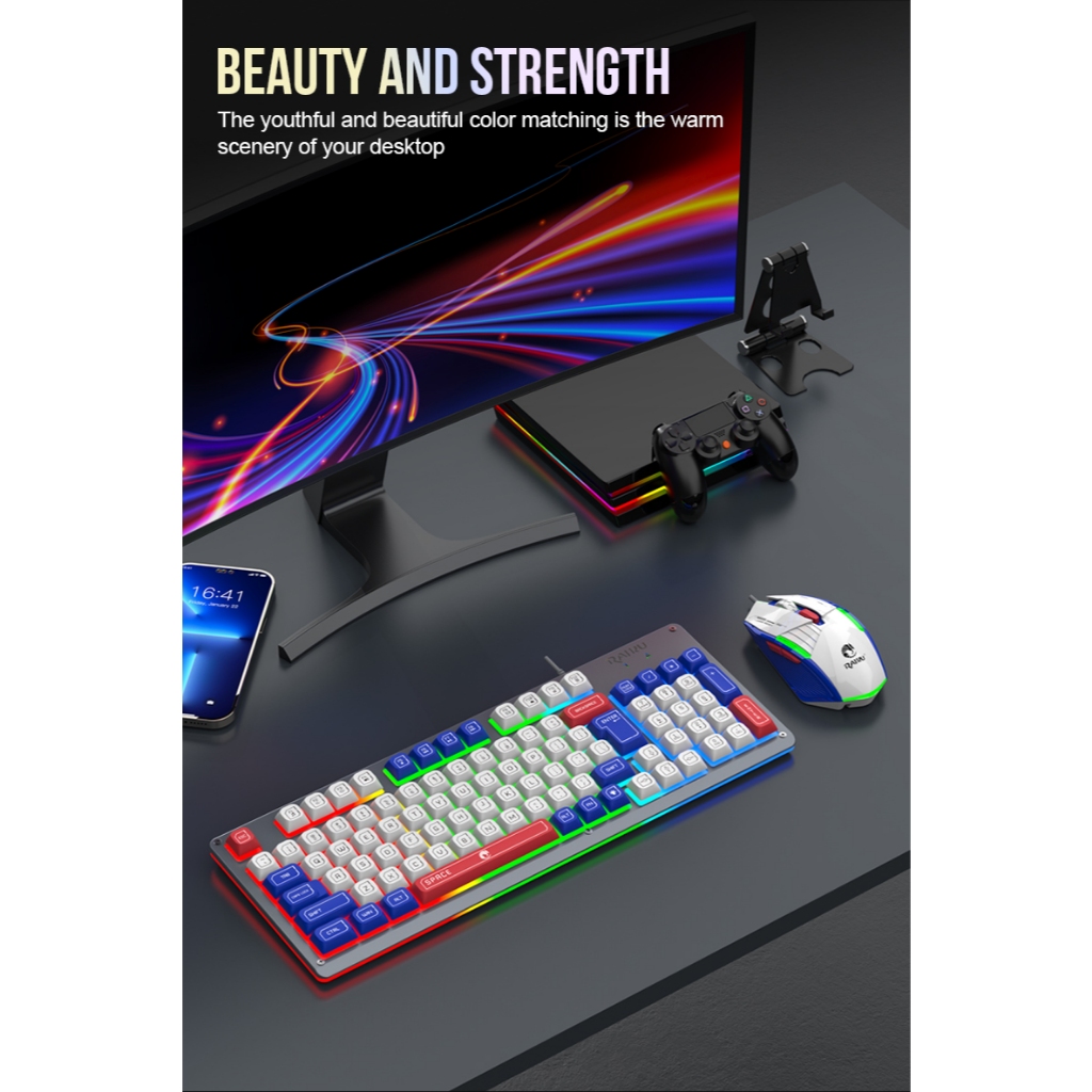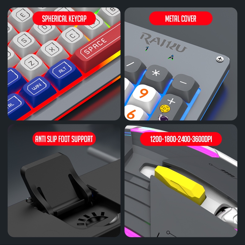 RAIKU T98 PRO 94 Keys Metal Cover Rainbow Spherical Keycaps Gaming Keyboard And Mouse Set