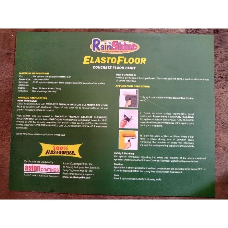 RAIN OR SHINE ELASTOFLOOR PAINT COLOR CHART