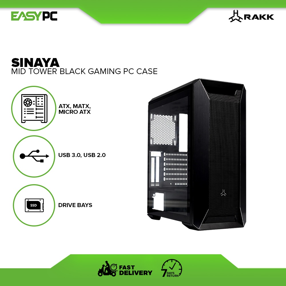 RAKK Sinaya Gaming Case Black Mid Tower, Brand New gaming case. ATX, MATX, Micro ATX Form Factor.