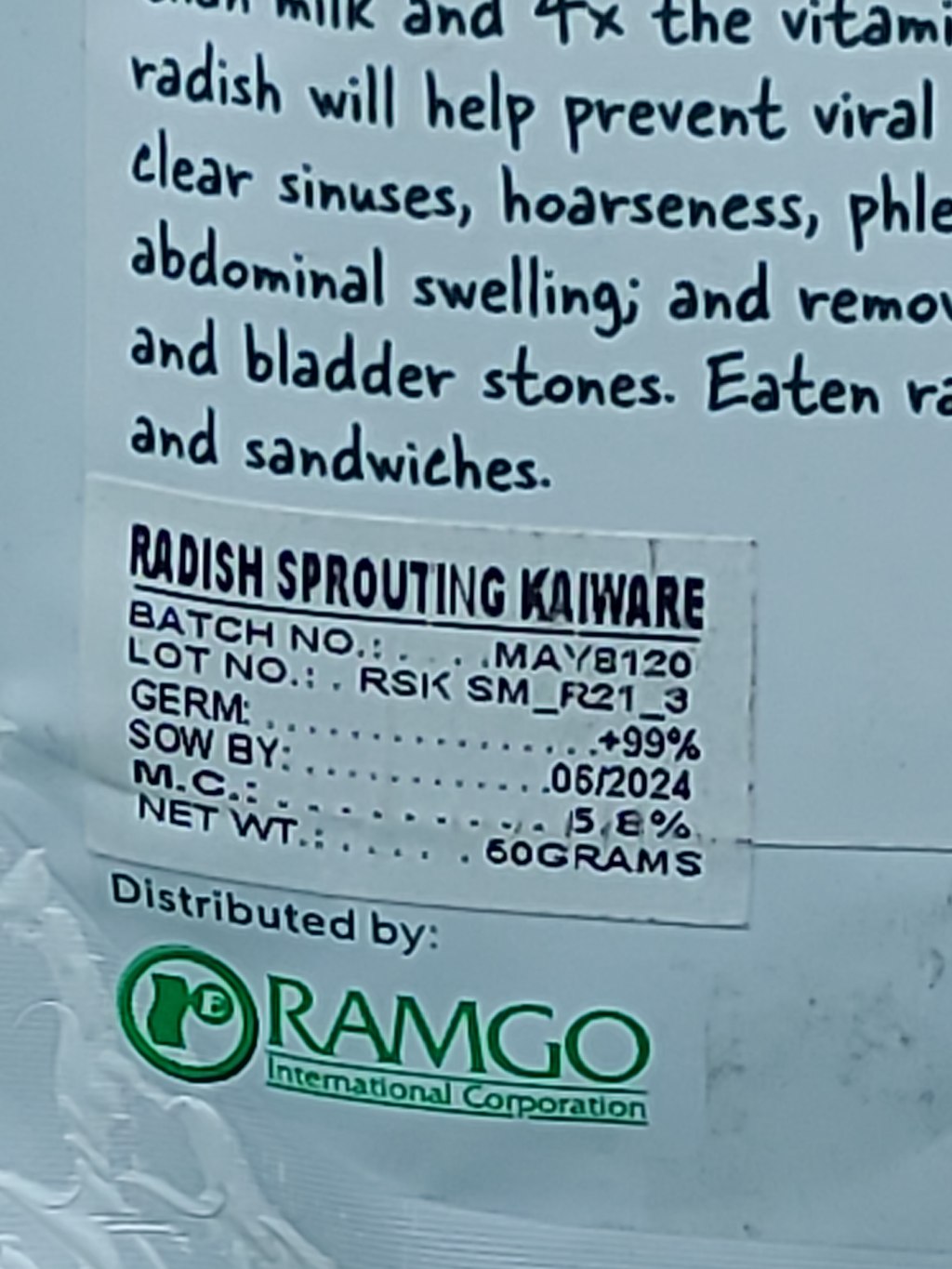 RAMGO RADISH KAIWARE SEEDS (50 GRAMS)