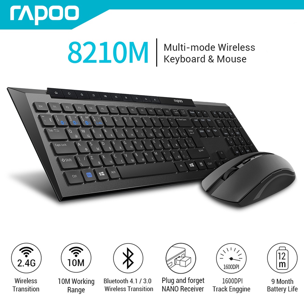 RAPOO 8200T Bluetooth Wireless Keyboard and Mouse Set Multi-mode 2.4G