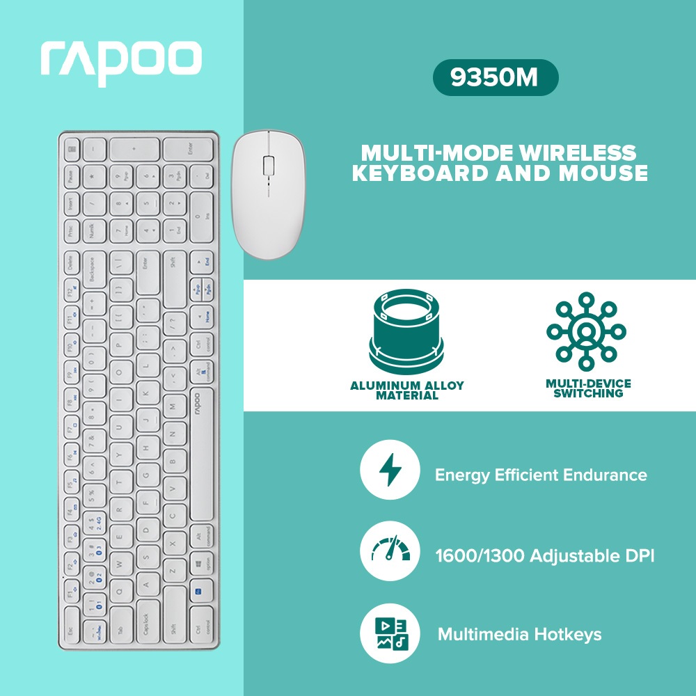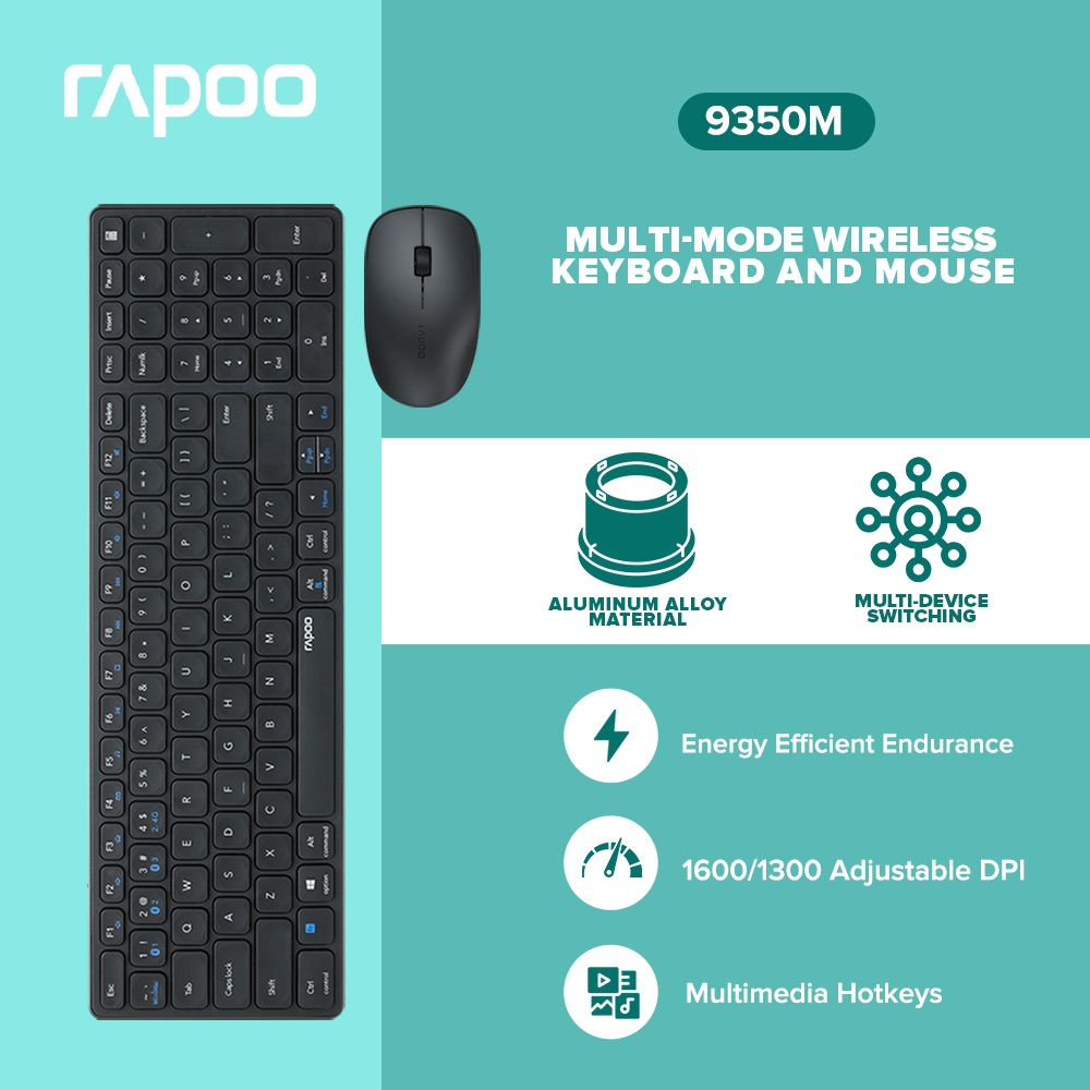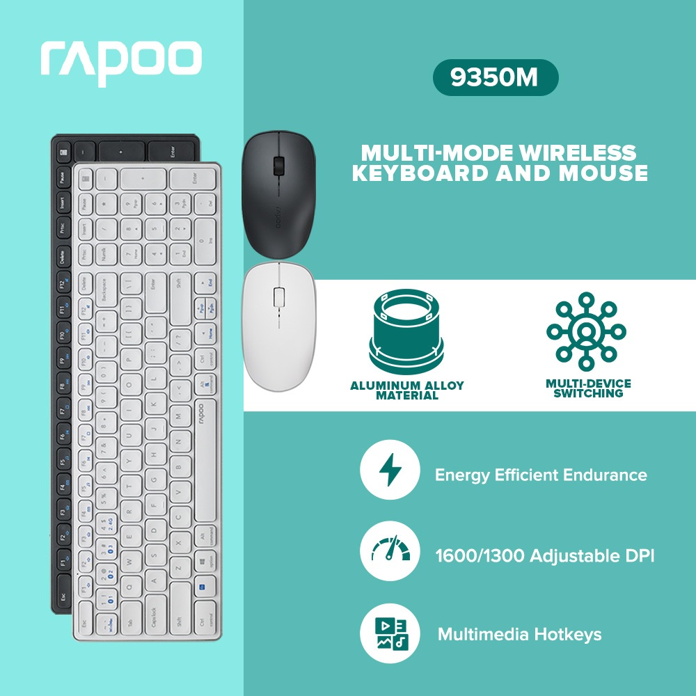 RAPOO 9350M Bluetooth Rechargeable Wireless Keyboard and Battery Operated Mouse forLaptop