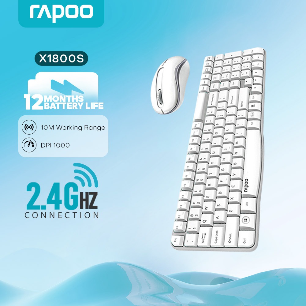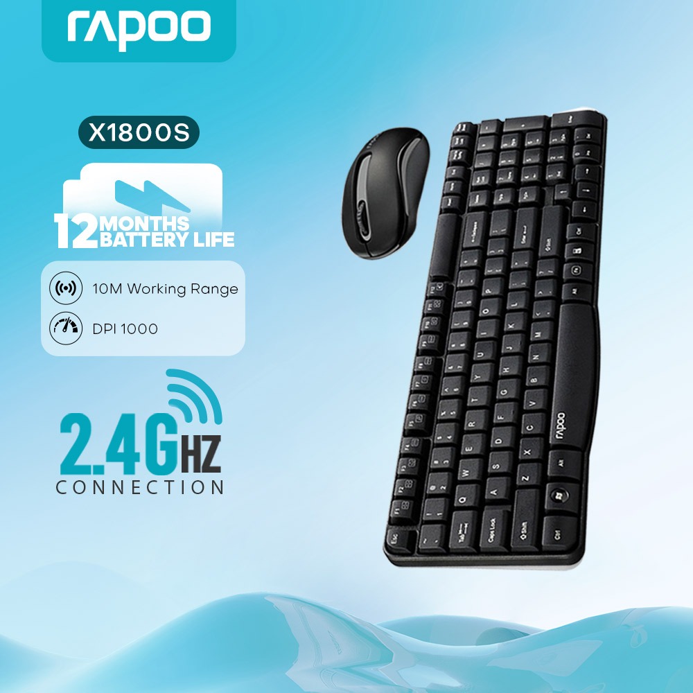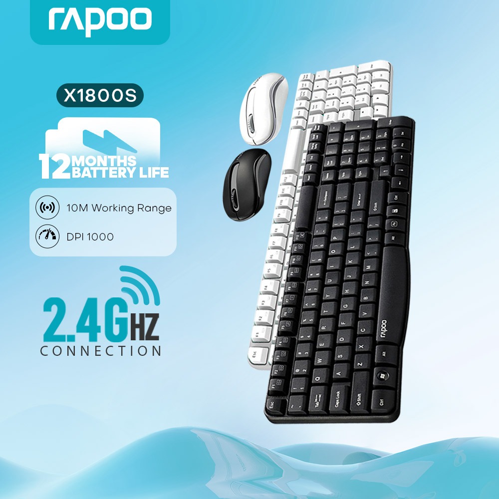 RAPOO X1800S Wireless Mouse and Keyboard Combo for Laptop,2.4G 108Keys 1000DPI