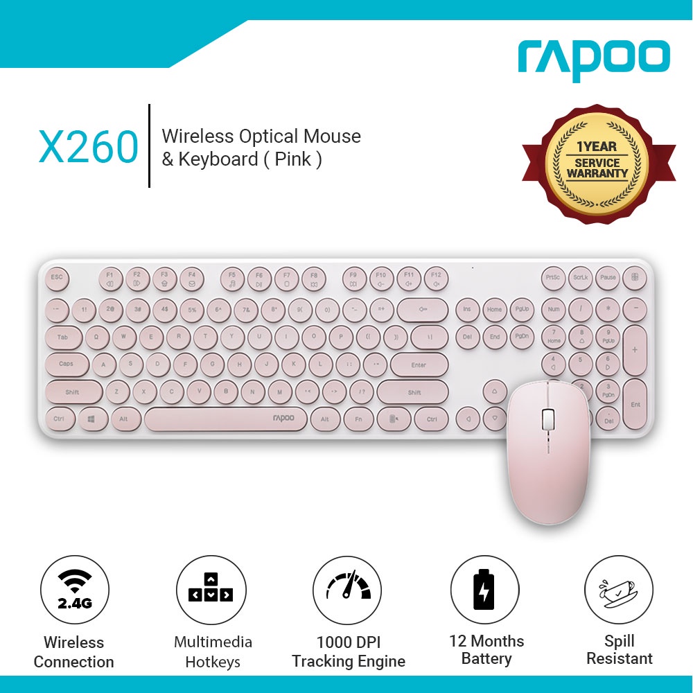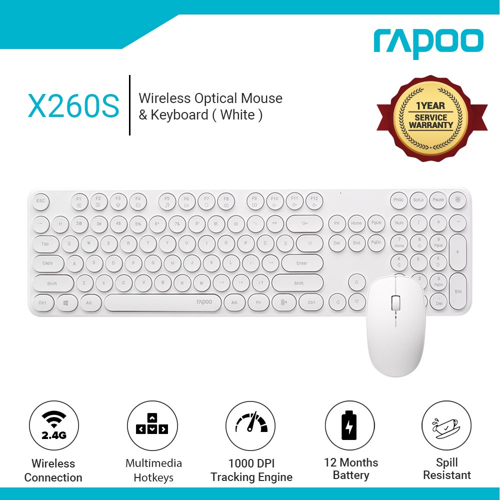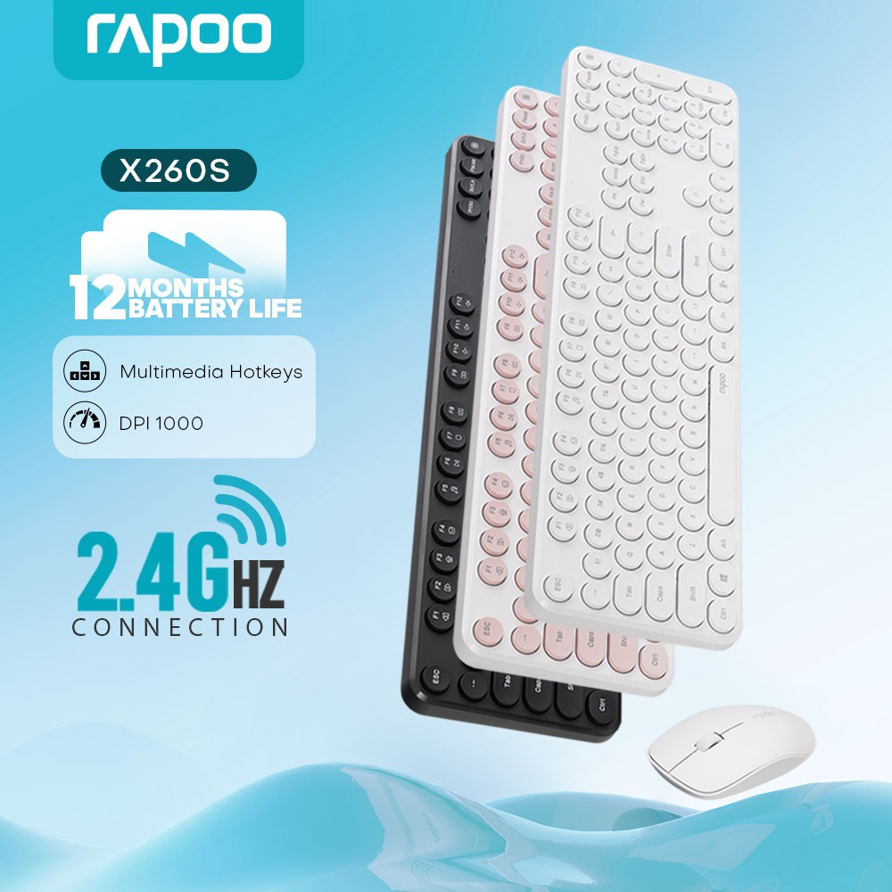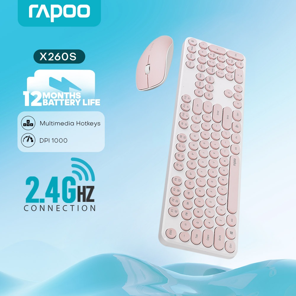 RAPOO X260S Slim Wireless Keyboard and MouseSet Retro Round Accurate Scissor Key Structure Caps