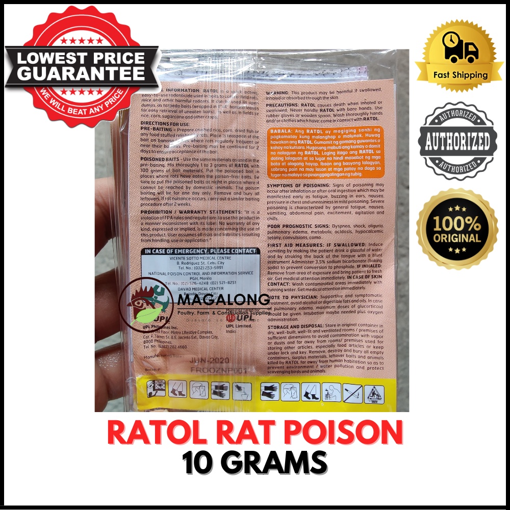 RATOL (ZINC PHOSPHIDE) - RAT POISON RAT KILLER RACUMIN RAT BAIT RATKIL RATX - RODENTICIDE - 10g