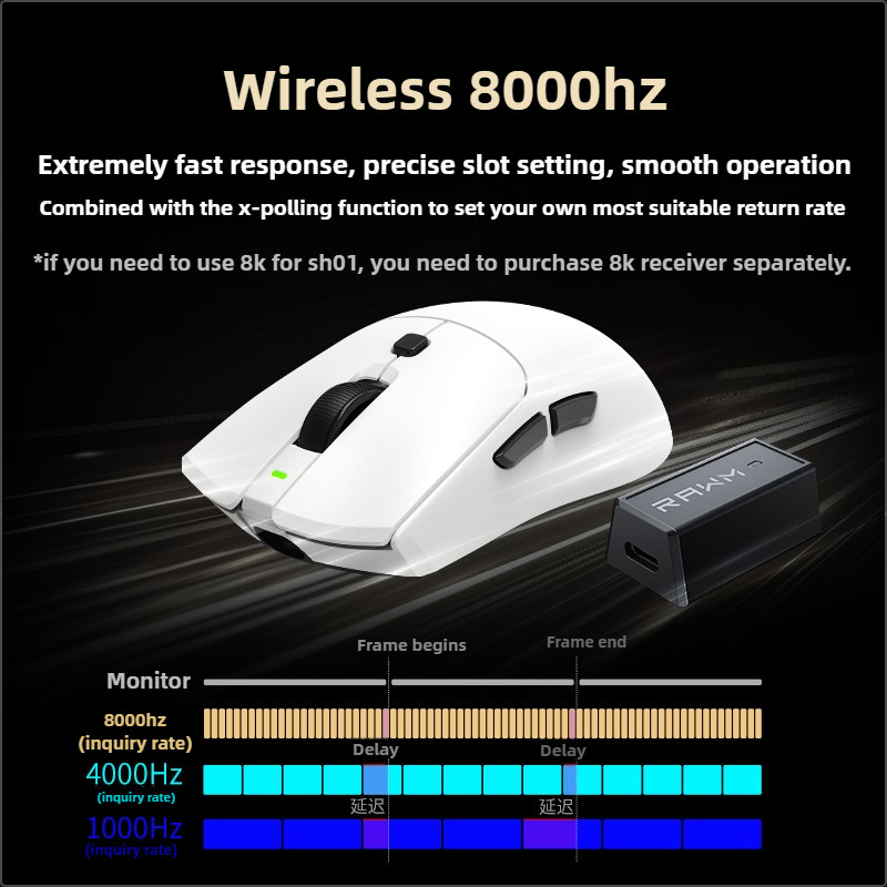 RAWM SH01PRO 8K Gaming Esports Mouse Wireless 3950 Computer Mouse Small Hand Hot swappable Micro Light VALORANT CSGO
