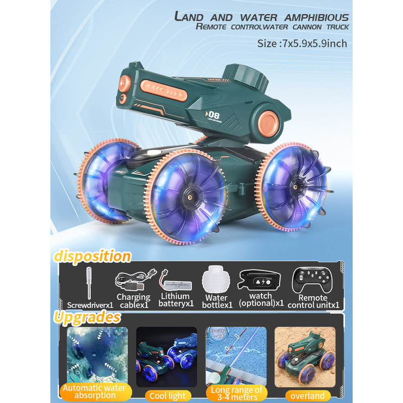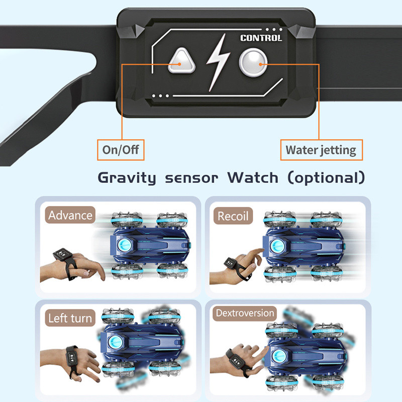 RC Amphibious Remote Control Car Boat for Kids, 4WD Water Squirt Gesture Sensing RC Car, 2.4GHz RC Stunt Car with LED Lights
