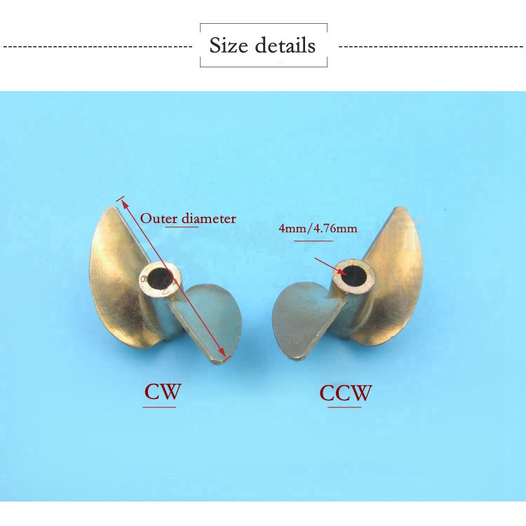 RC Boat 2-Blade Propeller Brass 36mm-45mm Pitch 1.9 Prop CW/CCW Hole 4mm/4.76mm(3/16) Ultra-high-speed Propeller Brushless Motors