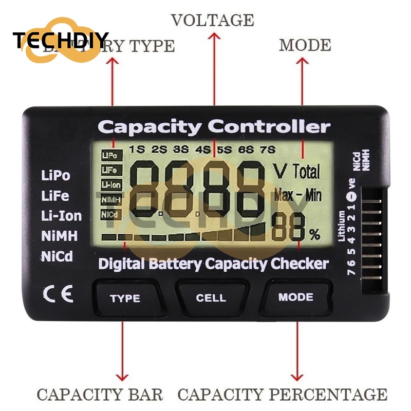 RC CellMeter-7 Digital Battery Capacity Checker LiPo LiFe Li-ion Nicd NiMH Battery Voltage Tester Checking CellMeter7