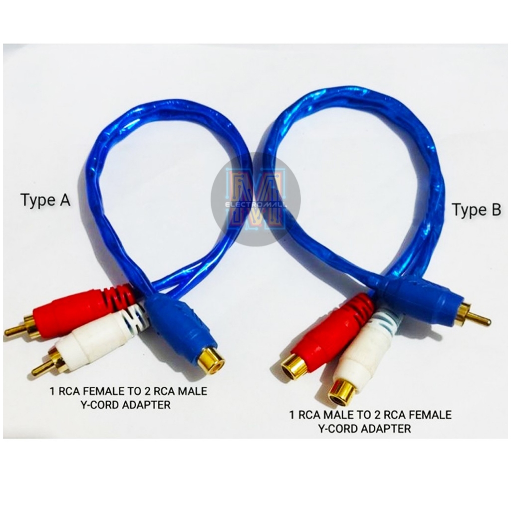 RCA AUDIO CABLE Y SPLITTER ADAPTOR 1 MALE TO 2 FEMALE CONNECTOR