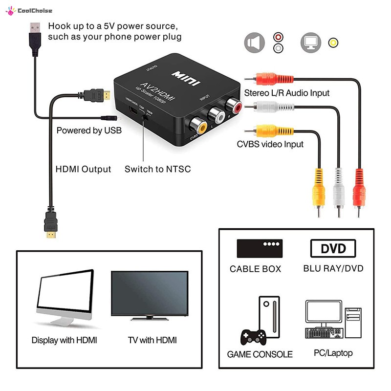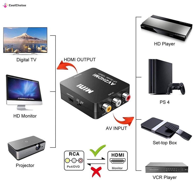 RCA/AV TO HDMI 1080P Mini AV2HDMI Converter RCA AV/CVSB L/R To HDMI Adapter For DVD VCR VHS STB