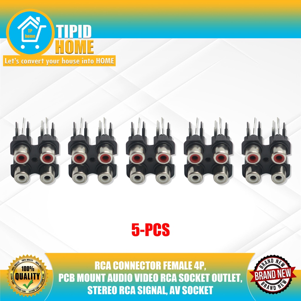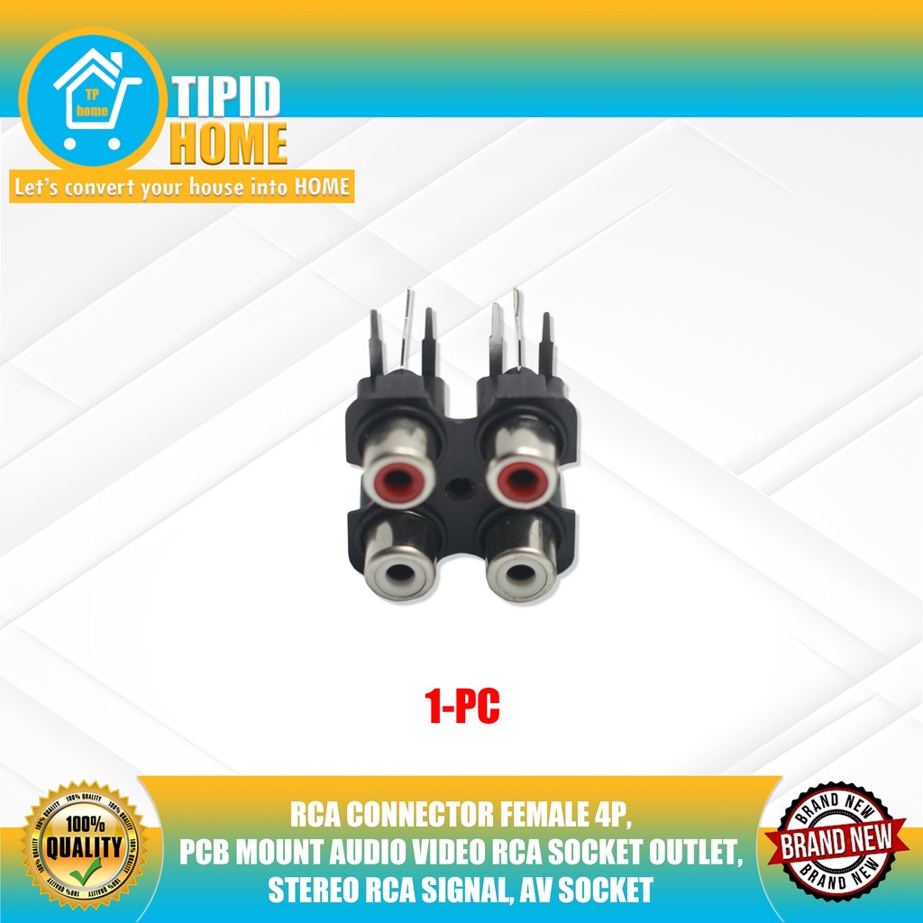 RCA CONNECTOR FEMALE 4P, PCB MOUNT AUDIO VIDEO RCA SOCKET OUTLET, STEREO RCA SIGNAL, AV SOCKET