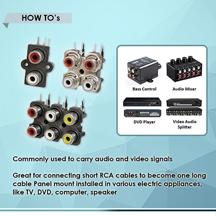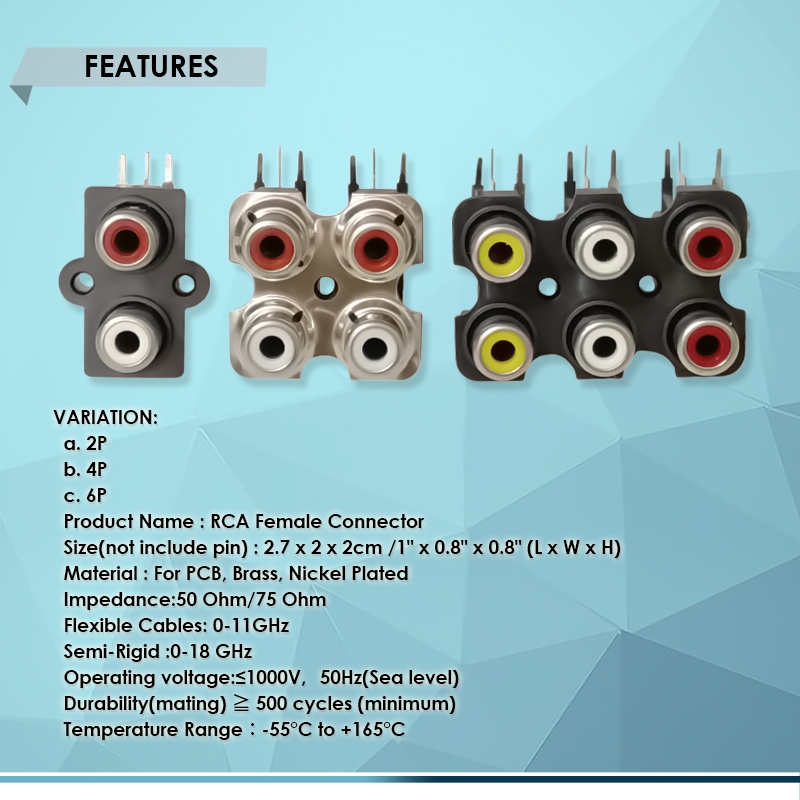 RCA FEMALE CONNECTOR (1-PC per ORDER), PCB MOUNT AUDIO VIDEO RCA SOCKET OUTLET, STEREO RCA SIGNAL