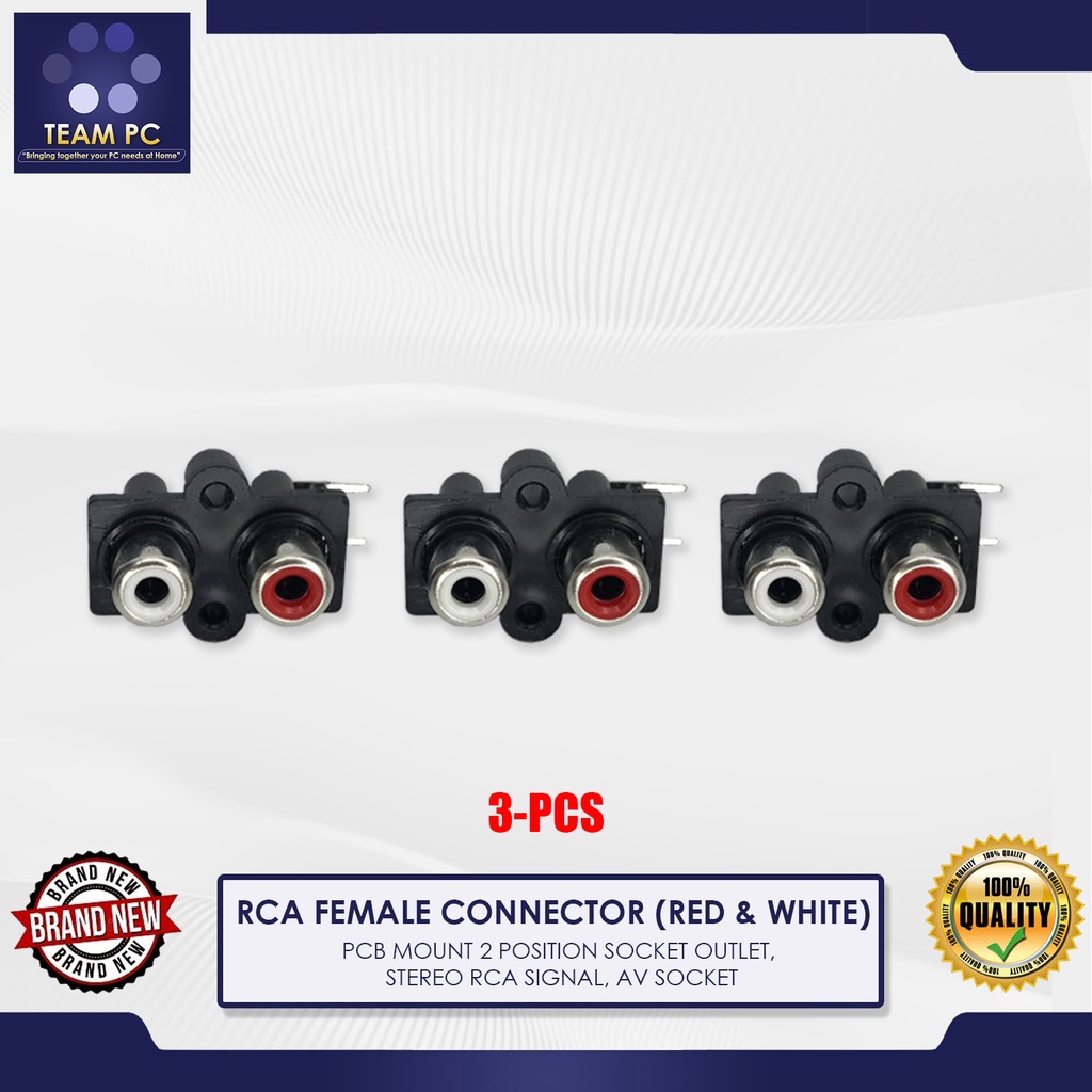 RCA FEMALE CONNECTOR (RED & WHITE), PCB MOUNT 2 POSITION SOCKET OUTLET, STEREO RCA SIGNAL, AV SOCKET