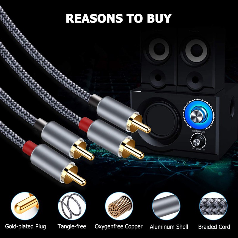 RCA Stereo Cable, [6Ft/1.8M, Dual Shielded Gold-Plated] 2RCA Male to 2RCA Male Stereo Audio Cable for Home Theater