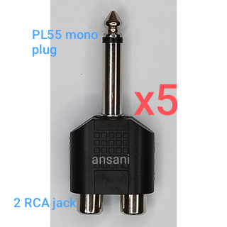 5pcs per order RCA TO PL55 PLUG/JACK ADAPTOR MONO STEREO