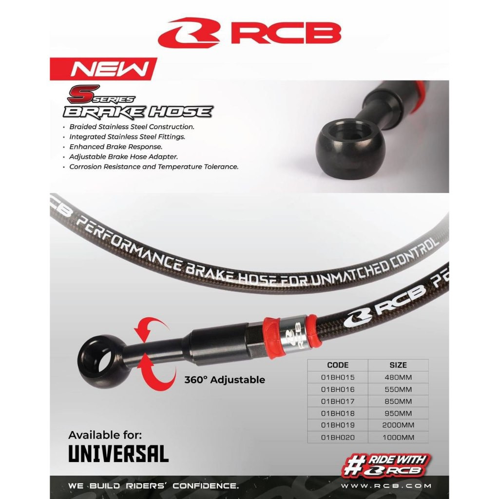 RCB BRAKE HOSE S-SERIES S SERIES STAINLESS STEEL [ TITANIUM / SILVER ] 550MM & 850MM & 950MM & 1000MM
