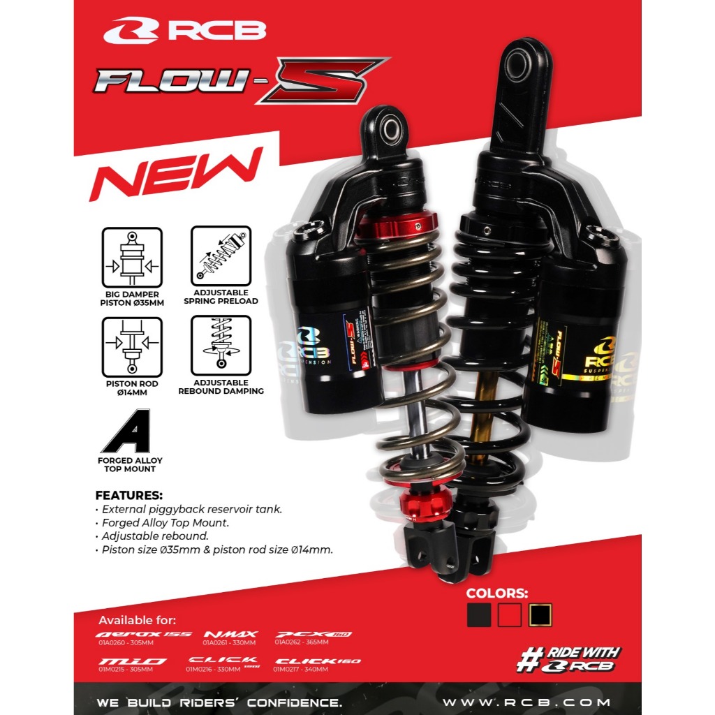 RCB FLOW S REAR SHOCK HONDA CLICK 160 (340MM) MONO SHOCK