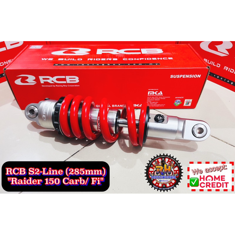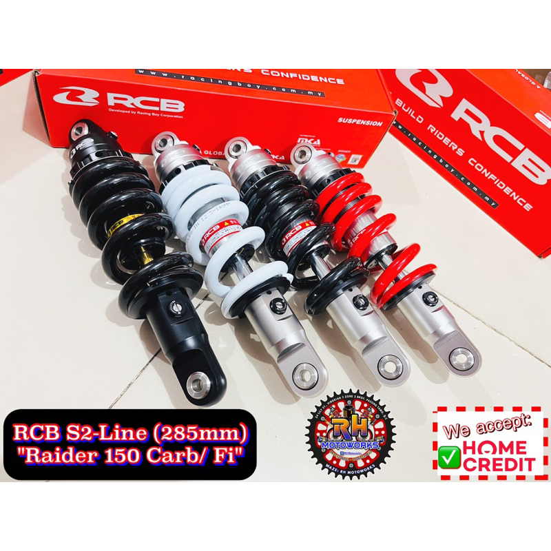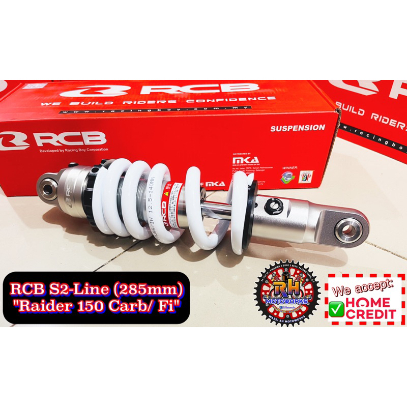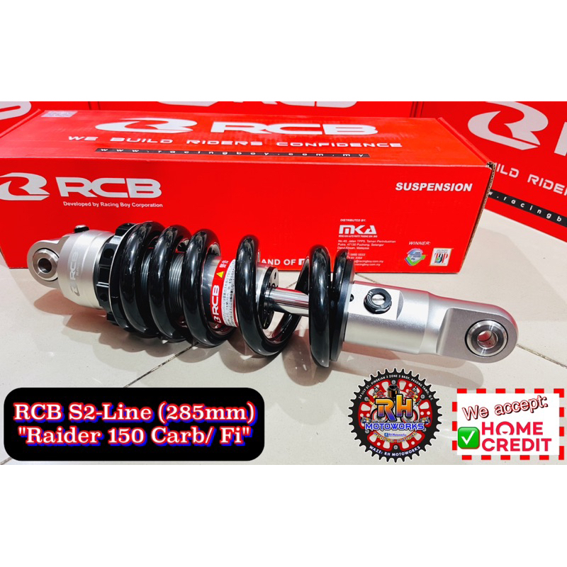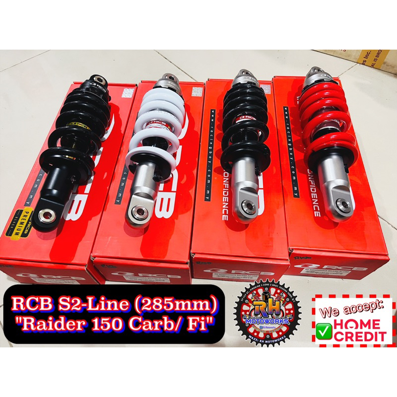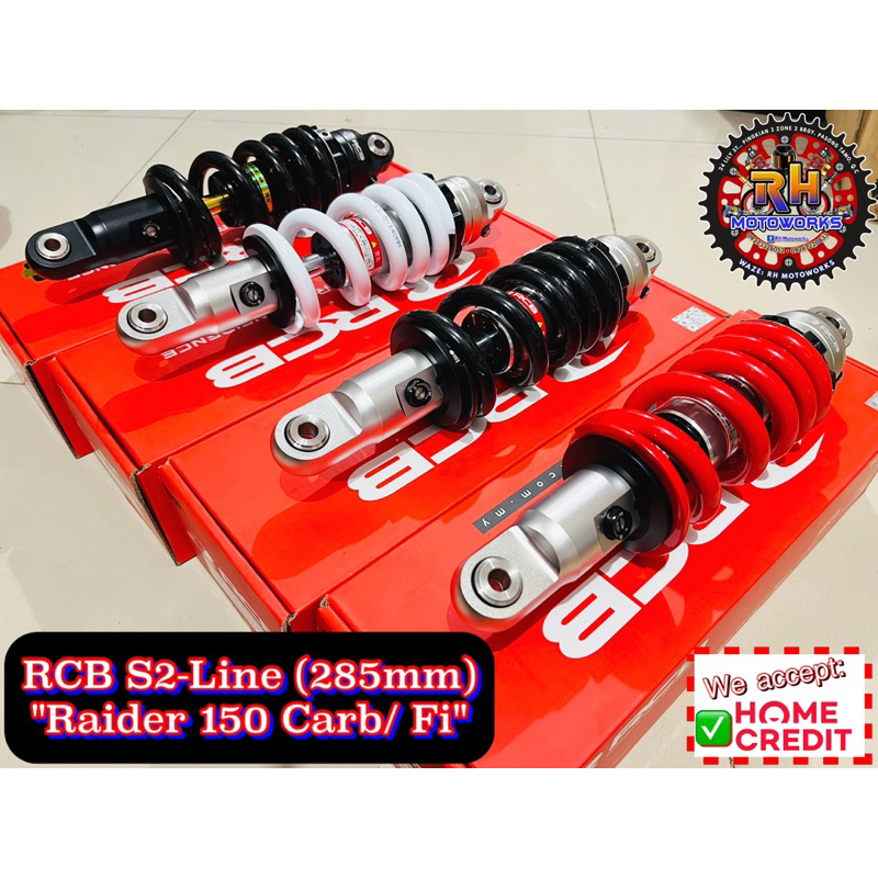 RCB S2-Line Rear Shock for Raider 150 Carb/ Fi (285mm) Adjustable and Bigger Piston