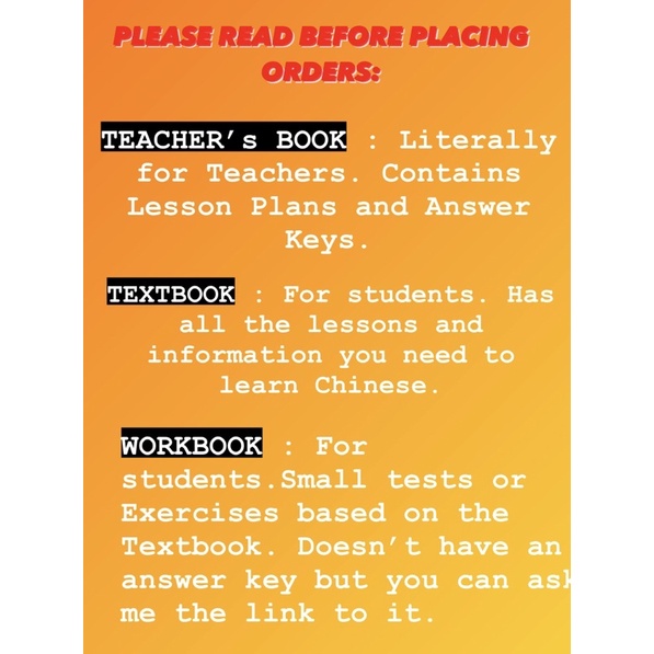 RE PRINTED HSK WORK BOOK and TEACHER'S BOOK !!